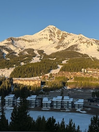 We enjoy sitting in front of the woodburning fireplace and watching the skiers come down the slopes. Many have said we have the best view of the mountain in Big Sky and other rental unit owners which don't have our view often use photos of Lone Peak taken from our area. We also enjoy sitting in the sunroom and enjoying the view of Lone Peak and reading a book while enjoying the scenery. The balcony is great in the warmer months. The indoor private hot tub can't be beat after an enjoyable day of skiing. We enjoy looking at Lake Levinsky and viewing the wildlife which often come to drink there. We have seen moose and deer there on a regular basis.