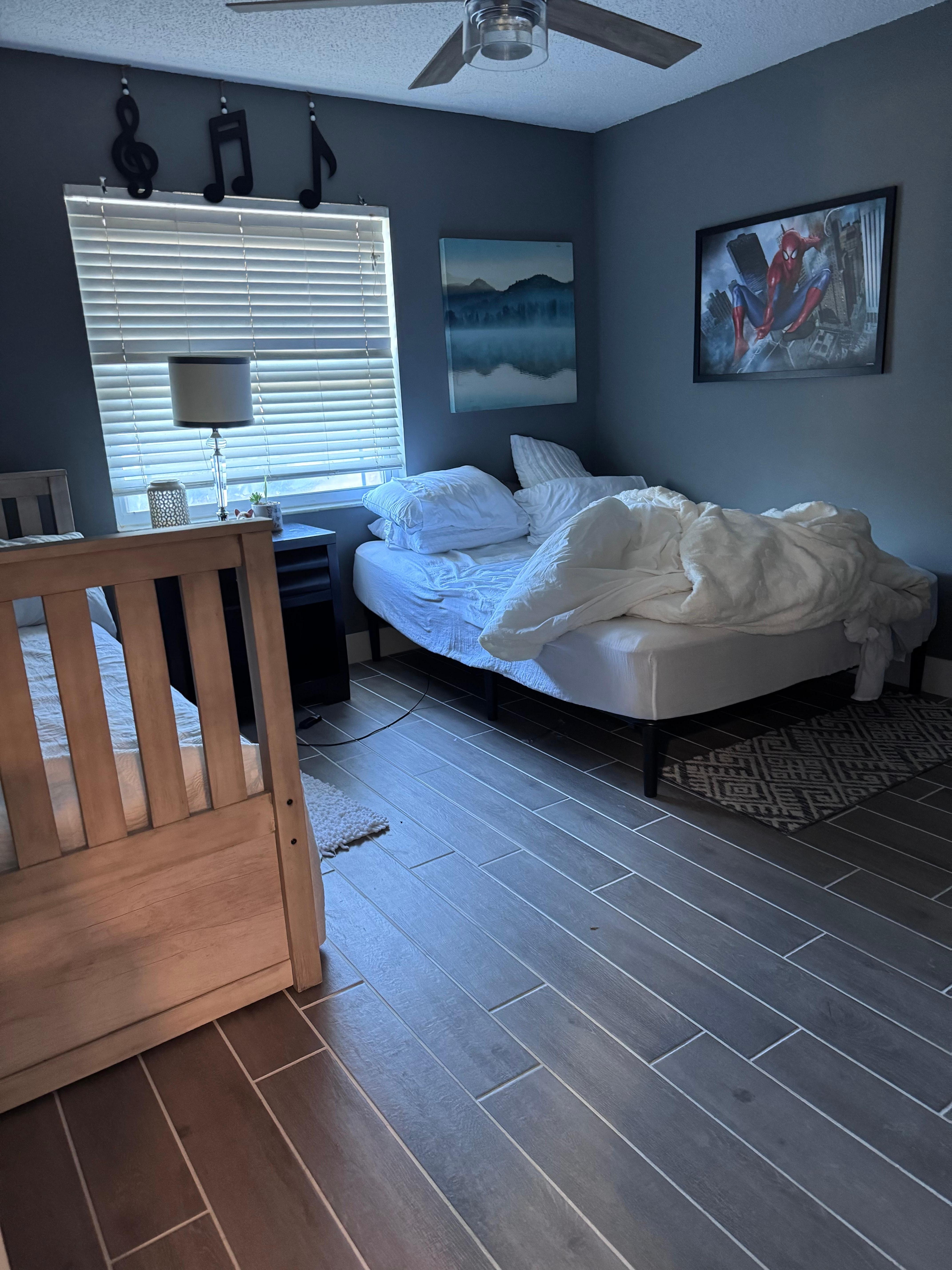 The stay was a bit of a mixed bag of good and bad. Cesar, the host, was welcoming and very communicative before and during much of the stay. At first all looked ok, but late in the evening 10/30 into the morning 10/31 we saw there were a number of issues, and 11/1 more issues occurred:10/31 report was made to Cesar and VRBO, partial credit was issued:beds had long hairs in them on the sheets and/or pillowsfloors in the bedrooms and bathrooms were not properly cleaned. rooms are setup on a remote control system with individual remotes for their lights and fans, but the signals cross causing one remote to control both so we ended up waking each other up accidentally during the night a few times. The fan also in the smaller guest room with the full and twin bed clicked very loudly every time used. Had to get our own fan to use in one room due to AC being boxed and at a set temp making the house at times get warmer than we liked.Microwave had broken handle and had to be pried open to use11/1 report was made to Cesar and VRBO, 2nd issue was left unresolved additional credit pending:Wall shelf in bathroom fell due to improper installationFuse for kitchen blew causing lights, microwave, air fryer, and toaster oven unusable. The only other plugs available to use were also connected to blown fuse. Other things of note: this is a shared house with limited access to laundry, both couches are broken (one literally coming apart), & the walls are very thin. Charming this was not.