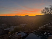 This property has 2 living rooms. One upstairs & one downstairs allowing for privacy. Large open floor plan upstairs with 15'ceilings & wood burning fireplace.Its a wonderful place to sit & watch the desert wildlife or storms roll in & amazing sunsets. City light views from our elevated built-in hot tub will make you feel like a star!