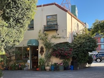 The suite features a king-size bed with plush bedding designed for a restful night’s sleep. Large windows look out over the courtyard, bringing in natural light and offering a view of our flower-filled gardens. Guests enjoy the convenience of their own garage located directly beneath the room, ensuring parking is simple and stress-free throughout their stay. Inside, you will find a cozy living area with a comfortable couch and flat-screen TV, as well as a dining nook by the window that makes an excellent spot for morning coffee or a glass of wine in the evening. For additional flexibility, a rollaway bed can be placed in the sitting area, providing an extra sleeping option for families or small groups. The private bathroom is accented with hand-painted tilework and includes a walk-in shower along with eco-friendly toiletries. High-speed Wi-Fi is available, making it easy to work or relax online during your stay. Pets are also welcome in this King Suite, making it a convenient choice for those traveling with their four-legged family members.