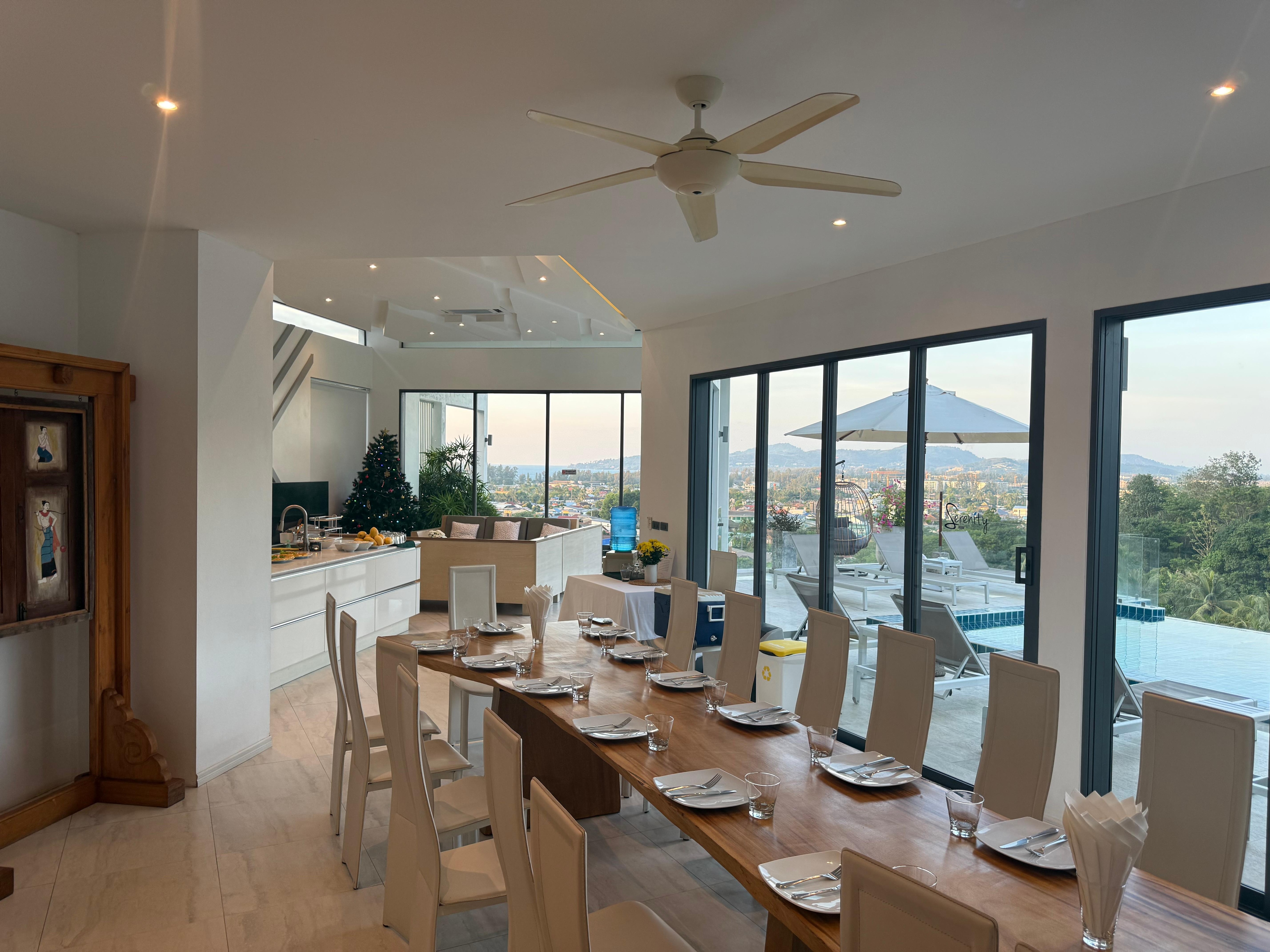 Centrally located on the West coast of the island, only 30 mins from the airport and 30 minutes to Patong. Only 5 mins to Surin and 8 mins to Bangtoa beach. Dozens of restaurants, beach clubs, Porto de Phuket and 3 supermarkets all within 10 minutes. Have our Private Chef cook you amazing meals of your choice. Relax with our in house masseuses. Return airport transfers included.