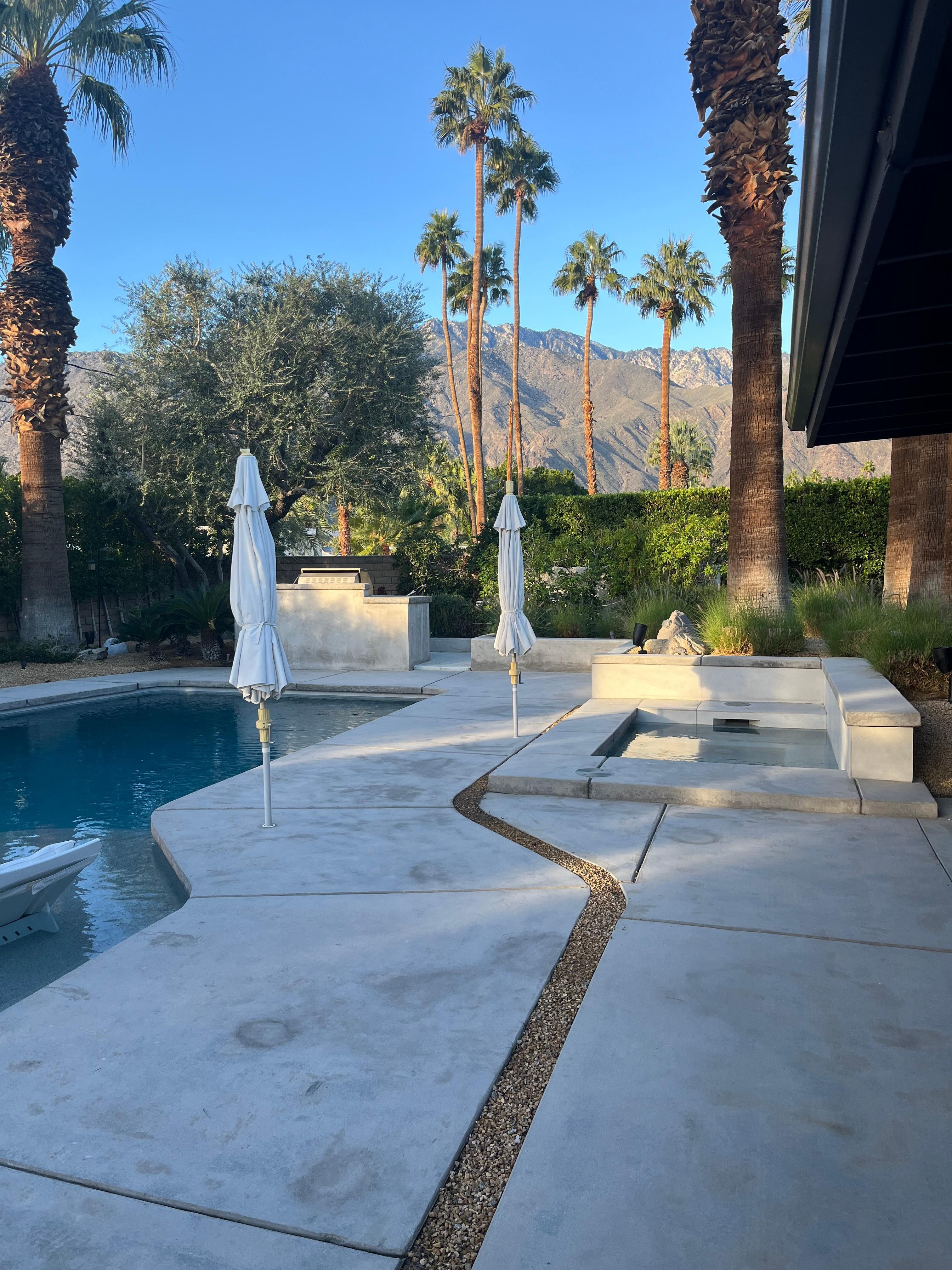 El patio trasero completamente privado le permite relajarse en la amplia piscina de agua salada y el spa, tomar el sol del desierto en las tumbonas y disfrutar de increíbles vistas a la montaña desde múltiples áreas de descanso.