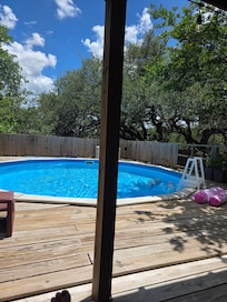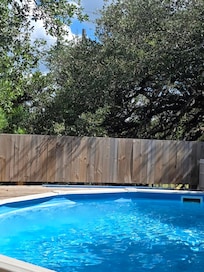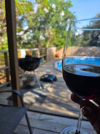 Para nuestras experiencias más exclusivas, el retiro para huéspedes de 576 pies cuadrados refleja la verdadera vida al estilo Hill Country, con vistas al impresionante Texas Hill Country y al estanque de temporada, con detalles de inspiración residencial, como una chimenea, cocina completa con encimeras de granito, acero inoxidable electrodomésticos, y área de comedor. La lujosa área de descanso ofrece una majestuosa cama con dosel con sábanas finas, junto a la zona de descanso está el majestuoso baño diseñado pensando en usted, que incluye un stand privado, una ducha envolvente de mármol, una bañera de mármol y un tocador de mármol. Sumérgete en nuestra gran bañera a la luz de las velas o en nuestro candelabro romántico. Si las burbujas son más tu estilo, entonces sumérgete en nuestra bañera de hidromasaje para dos personas debajo de tres grandes robles, perfectamente ubicado para relajarte y contemplar las estrellas. Después de un largo día relajándose y disfrutando el uno del otro, no se pierda la oportunidad de relajarse en el sofá de cuero frente al fuego o ver su programa favorito en la televisión de pantalla plana. Cualquiera que sea su gusto, lo encontrará aquí en A Hill Country Haven, situado en medio de la impresionante Texas Hill Country y el Texas Wine Trail.
