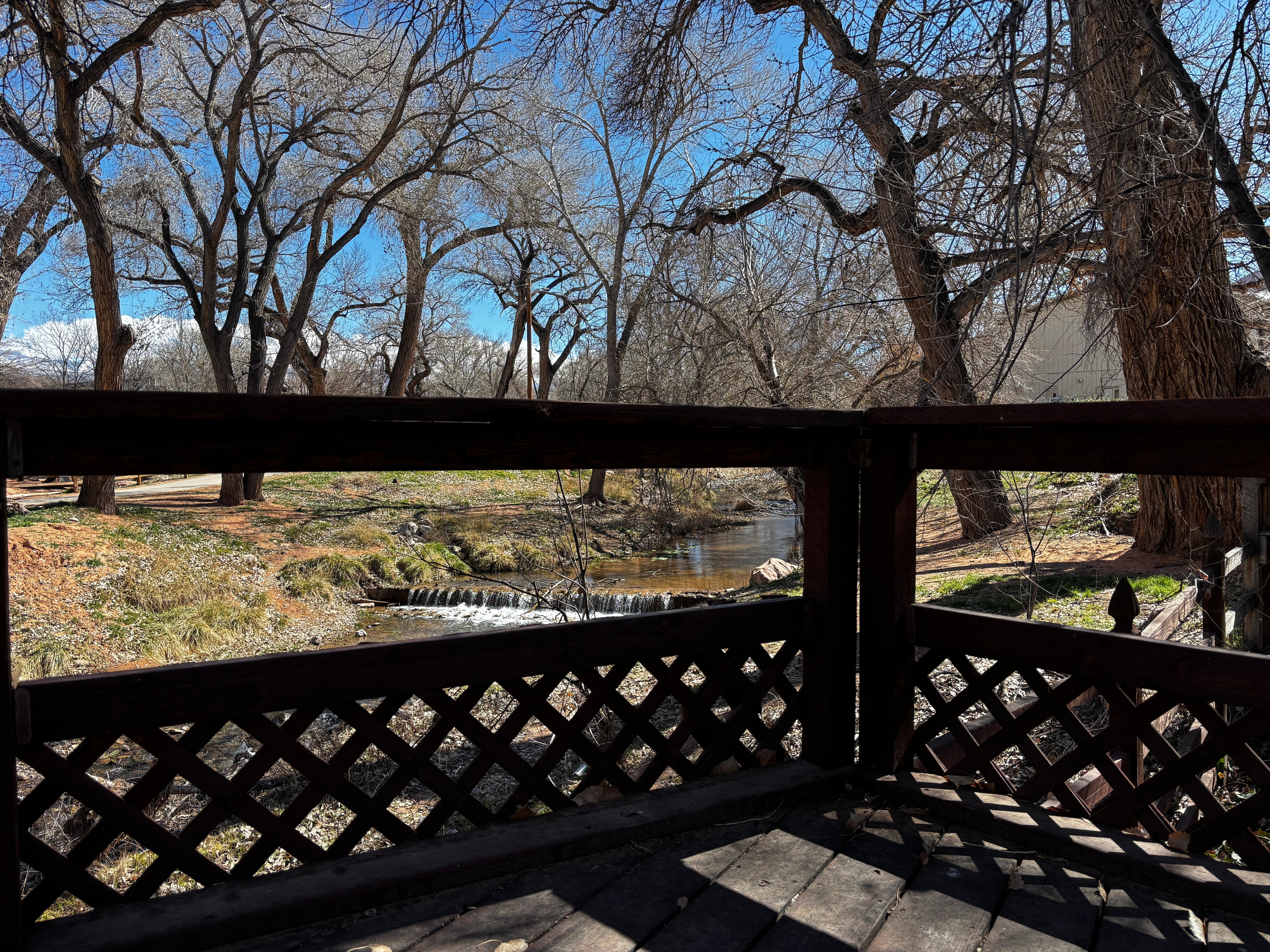 Welcome to Creekside 61! Kick back in the shaded yard and soak in the sounds of the nearby creek at this cozy Moab retreat. Located just one block from Main Street, you’ll be steps from local shops, cafés, and restaurants while still enjoying a peaceful, wooded setting with mountain views. Inside, rustic-chic details like wood-beamed ceilings and hardwood floors meet modern comforts, including a sparkling full kitchen with stainless appliances and comfy suede sofas for evening relaxation. After a day of exploring Arches, Canyonlands, or Sand Flats, unwind in the shared hot tub onsite.