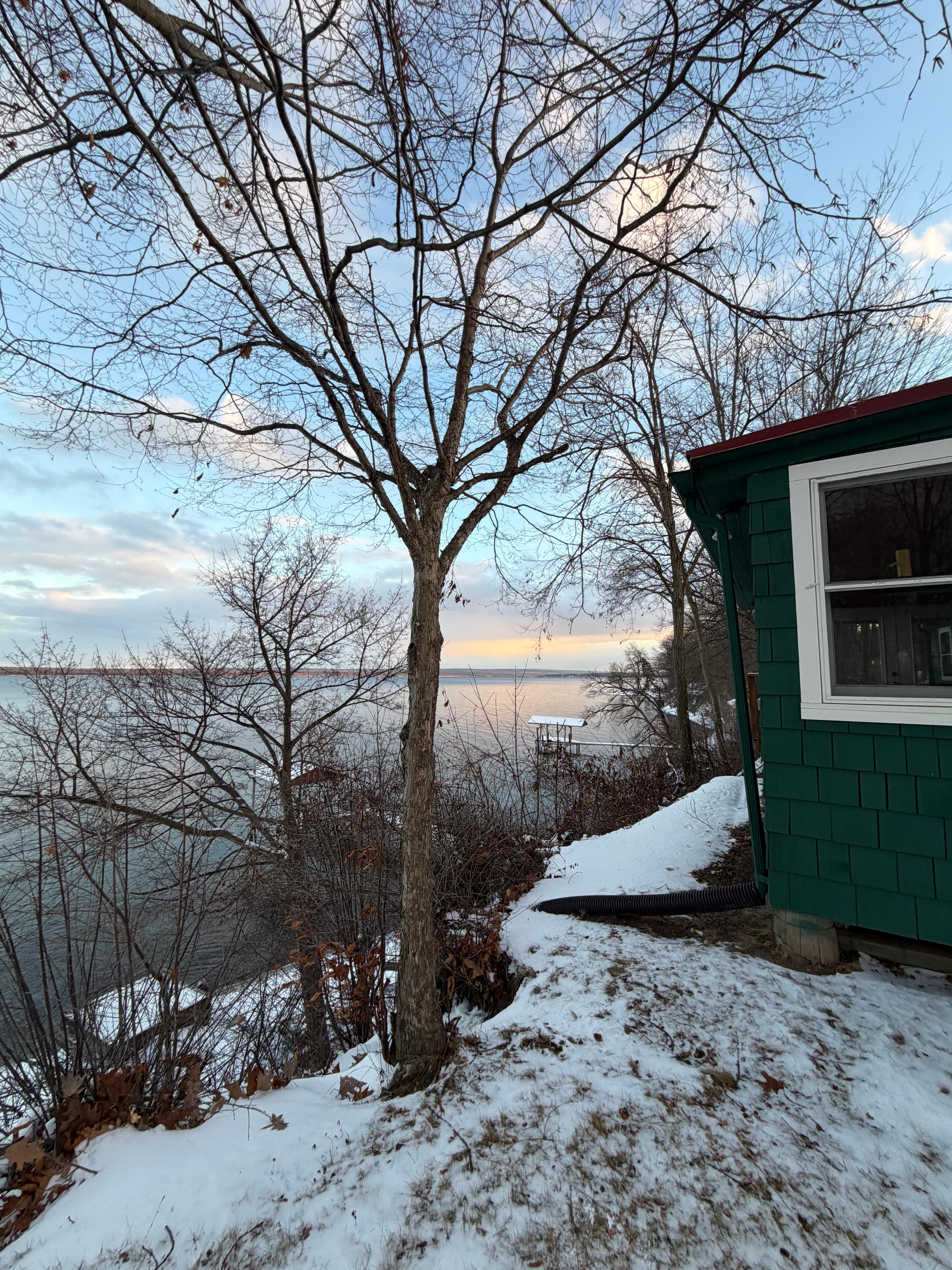 El Green Duck es simplemente una casa fácil para estar. Al final de un camino privado, encontrará nuestra encantadora casa del lago de 1 habitación, con una terraza acristalada (el sofá cama se estira a una cama Queen para dormir más), una cocina completa y una sala de estar con un pequeño baño de trabajo ( ducha de pie solamente). La casa está equipada con lavadora y secadora. Nos gusta mantener todas las ventanas protegidas abiertas durante todo el verano y dejar que la brisa mantenga fresca la casa, pero si lo necesita, hay aire acondicionado en el dormitorio y en la sala de sol que enfría todo el lugar. Hay WIFI, sistema de DVD, canales de TV Dish Network en funcionamiento, pero guárdelo para un día lluvioso. Pasará la mayor parte de su tiempo al aire libre en la terraza o en la playa y / o en el muelle de natación. Hay 2 kayaks para su uso, así como algunos chalecos salvavidas adicionales. Un montón de tumbonas para sentarse o tumbarse al sol. ¡Un gran lugar para observar aves y pescar desde el muelle! ¡2 fogatas de metal levantadas al fuego (una en la playa y otra en el patio) para esas hogueras nocturnas! ¡Esta propiedad es única ya que tenemos tanto el amanecer en el lago como la puesta de sol sobre las colinas de Fox Run Winery! Una última cosa: un tren encantador e histórico pasa junto a la casa. El tren parece no tener un horario establecido, pero parece funcionar con muy poca frecuencia. A veces no viene durante días y otras pasando hasta 3 veces en un día. Vemos esto como parte del encanto del lugar: ¡el tren va lento y el conductor incluso hará sonar el silbato para usted si saluda al tren! Con todo, esta es la casa perfecta para una escapada tranquila, llena de pesca, natación, descanso, trabajar en su nuevo libro o simplemente una experiencia rural romántica. Ideal para 2 personas, pero puede dormir hasta 4 en total. Ah, y si se pone demasiado tranquilo, el centro histórico de Ginebra está a 15 minutos en coche. Allí puede encontrar tiendas de regalos, un cine, The Smith Opera House, supermercados y un parque frente al lago.
