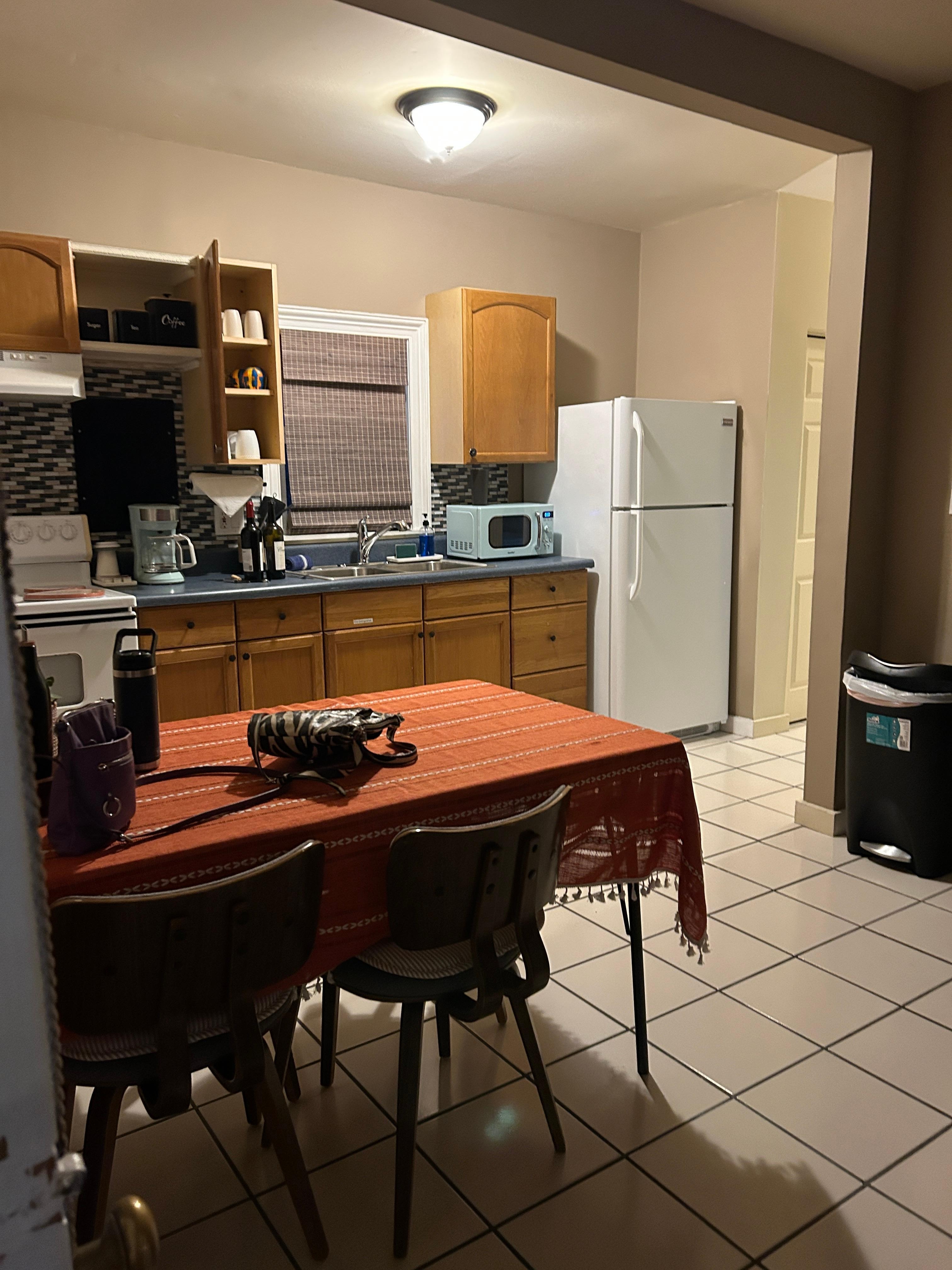 The kitchen is stocked with cookware, spices, oil, and all the essentials you need to prepare delicious meals with ease.