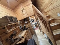 Please note that it is compact at 180 sq ft, with stairs leading to the primary bedroom loft, which has low ceilings (about 5'4" high).