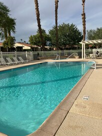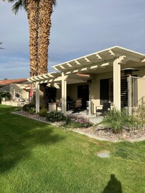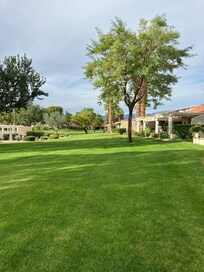 Wake up to warm desert sunshine and unwind on your private shaded patio overlooking lush green space. Sip your morning coffee or evening cocktails under the trellis, or stroll a few steps to the pool and jacuzzi for the ultimate in relaxation. Feeling active? Enjoy on-site tennis and pickleball courts for a little friendly competition.