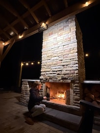 Guests enjoy full access to the entire lodge, offering comfort and convenience at every turn. Inside, you’ll have the run of all living areas, the fully equipped kitchen, every bedroom and bathroom, and the in-home laundry space. Step outside on the deck and follow the stairs to the expansive 30×30 stone patio with a wood-burning fireplace, or relax beneath the cozy gazebo seating area. The private driveway provides ample parking for up to six vehicles.