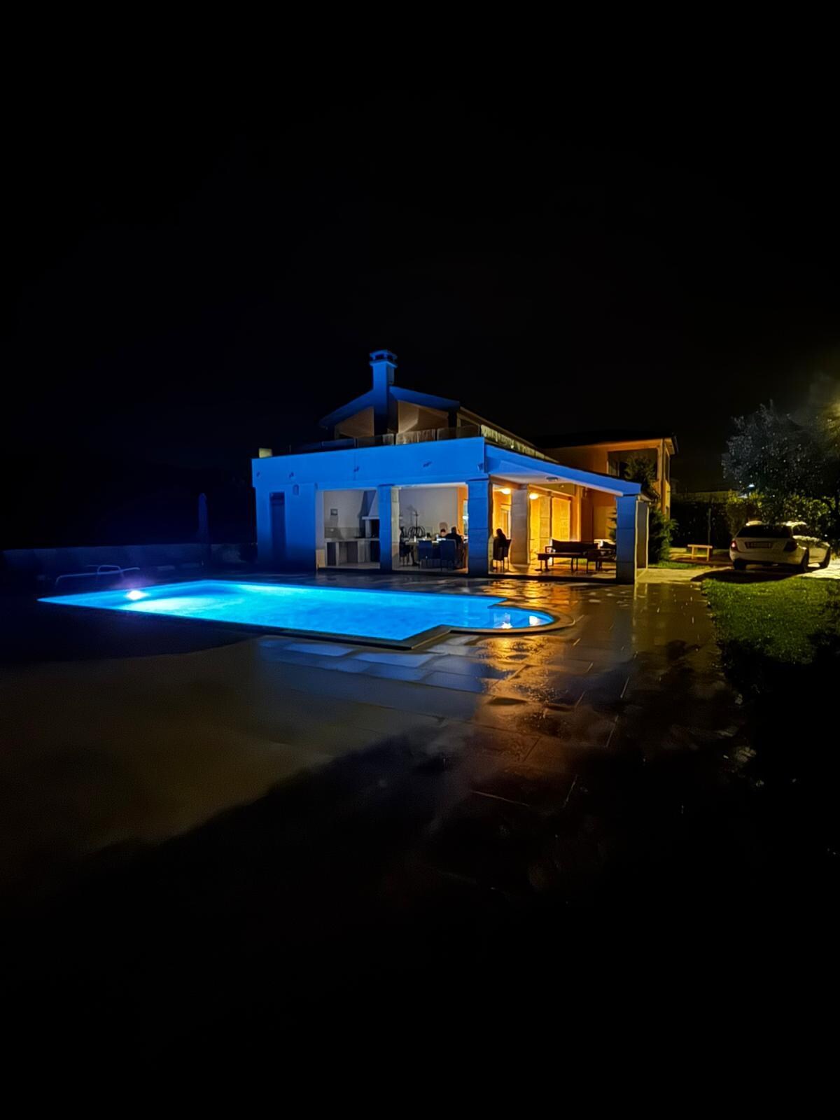 Wunderschöne Villa, toller Aussenbereich, Überdachung war gold wert wegen einem total verregnetem Tag.Allerdings ist der Strom bei dem starkregen 2x ausgefallen. Hier muss man die Agentur kontaktieren, da man selbst nicht zum Schalter kommt. Hat aber gut funktioniert.Gut zu wissen ist auch, dass man bei den unteren zimmern keine Dusche hat. Nur eine große Badewanne, die wir nicht genutzt haben.Haben uns die 2 duschen im oberen Stockwerk geteilt.Sehr durchgelegen und dünn sind die matratzen bei den betten. Die pölster dafür super dick.Absolut positiv fanden wir die toll ausgestattete küche! Viel besteck, auch scharfe messer, knoblauchpresse, töpfe, pfannen, plastikboxen... und viele viele weingläser ;) ist nicht oft der fall bei miethäusern. Hier aber wirklich gut.Der parkplatz für die autos ist eng. Mehr als zwei autos gehen sich nicht aus. Dann kann man aber auf der straße auf der seite parken.Ist das letzte haus einer schmalen sackgasse, von daher auch sehr ruhig, wenn man die geräusche des waldes nicht als störend empfindet.Wir hatten eine tolle zeit :)