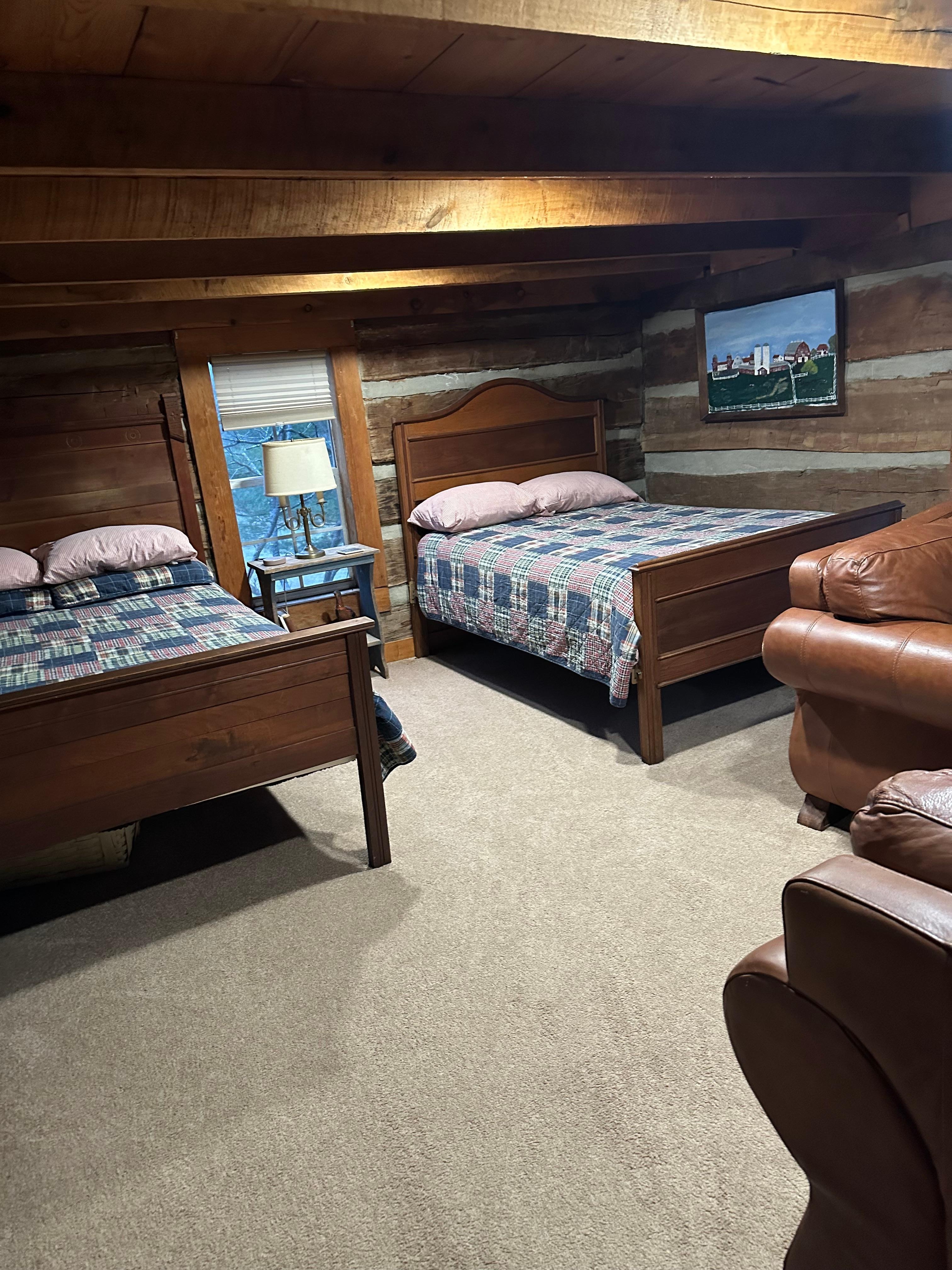 Dormitorio 2 con dos camas matrimoniales y una sala de estar con sofá