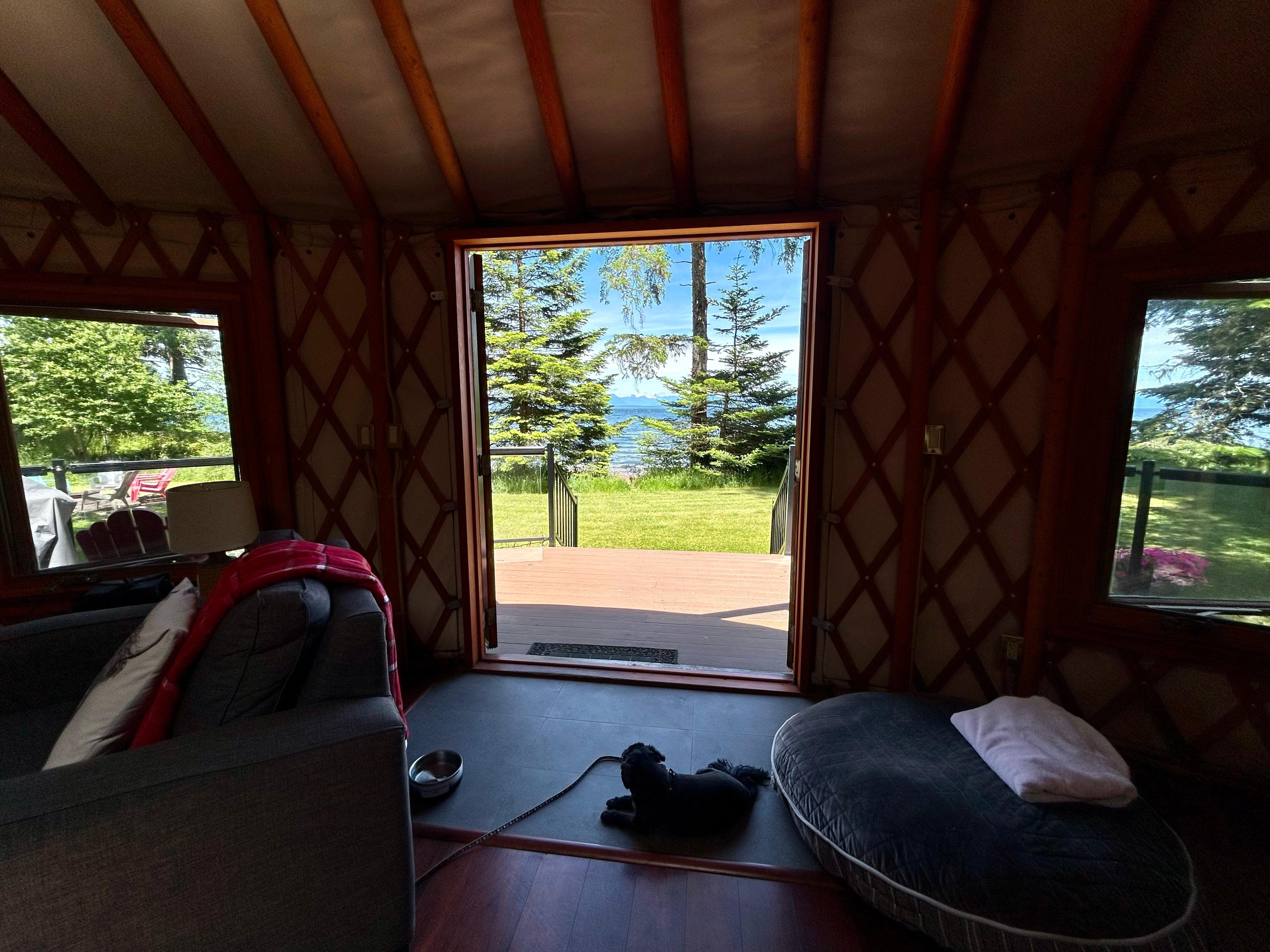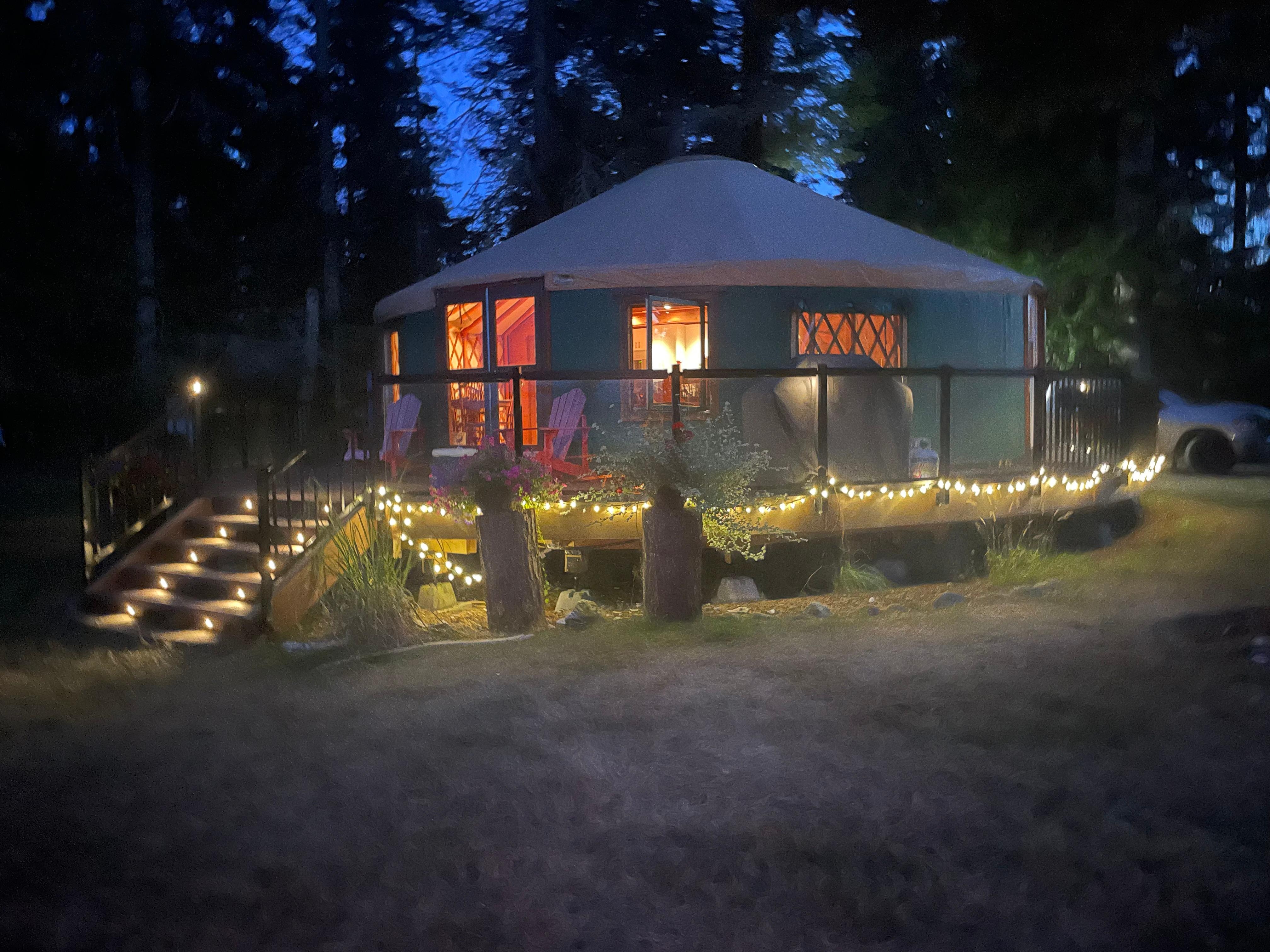 Situado en una milla de frente al mar, nuestro 800 Yurt pies cuadrados tiene capacidad para seis personas, con todas las comodidades del hogar. Tienen aire acondicionado, una cocina totalmente equipada, baño grande con bañera de inmersión de hidromasaje, chimenea de gas y mucho más!