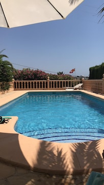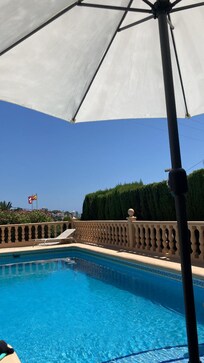 Confortable villa de una planta. Tranquilo en un callejón sin salida. Vistas al mar ya la montaña, piscina individual 4X9 con ducha al aire libre y estacionamiento privado, jardín completamente cerrado, mar a 300 m. Playa de arena a 800 m, tiendas, tenis y restaurantes en el lugar. Parada de autobús para todos los destinos a 1 km. En Calpe nos bañamos de abril a octubre, 300 días de sol al año. En la temporada baja, de noviembre a marzo, ¡supera los 20 ° C en verano, de 9HOO a 17HOO! Bermudas, y una camiseta son suficientes, es de esperar un poco de lana por la noche. Todas las habitaciones tienen calefacción individual, eléctrica o de gas, un aire acondicionado individual está a su disposición, así como ventiladores para calefacción. Estarás en casa! silencio, silencio asegurado, casa sin salida. INTERNET. WIFI GRATUITO; Y TODAVÍA ESTAMOS BAÑANDO EN OCTUBRE DISFRUTA