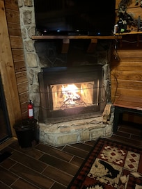 Después de la cena, disfrutar de un juego en la mesa de billar de tamaño completo o elegir un programa de la TV de pantalla plana con más de 200 canales vía satélite. La acogedora sala de estar cuenta con una chimenea de combustión de madera de piedra romántica con libre proporciona leña. Si estás buscando una verdadera cabina de luna de miel Entrar en Gatlinburg con vistas a las montañas, te encantará Espectacular Vista.