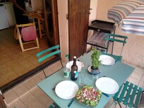 El tranquilo apartamento está ubicado en el tercer y último piso y disfruta de una hermosa vista. Tiene todo lo que necesita: cocina de 2 quemadores, nevera, microondas con parrilla multifunción, tostadora, cafetera, radio, televisión, plancha, aspiradora, barbacoa, tumbonas, ventiladores, etc.