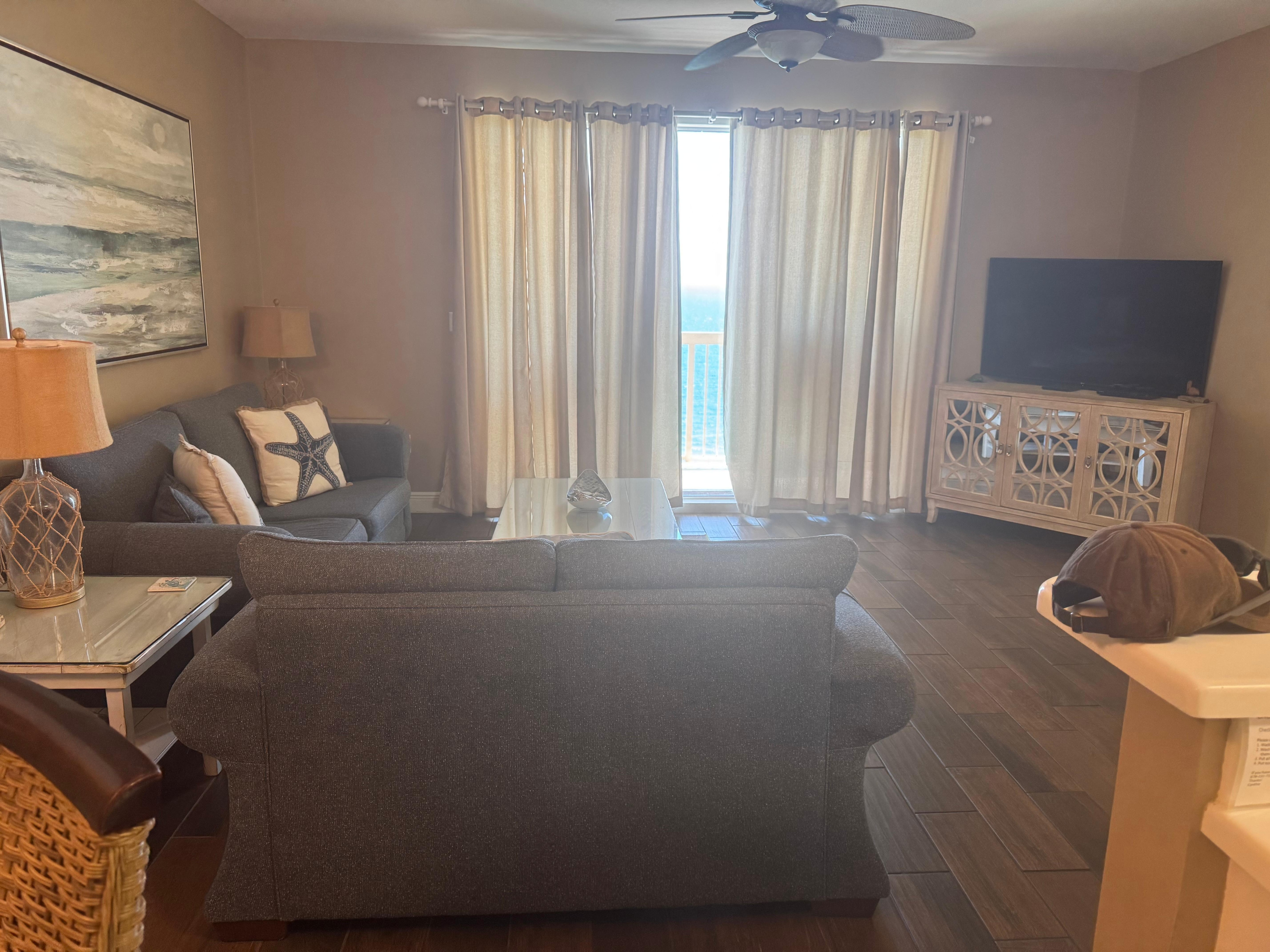 Otras comodidades incluyen TV DE PANTALLA PLANA en la sala de estar y dormitorio; Amplio balcón y vistas increíbles del océano y la playa desde el piso 16.