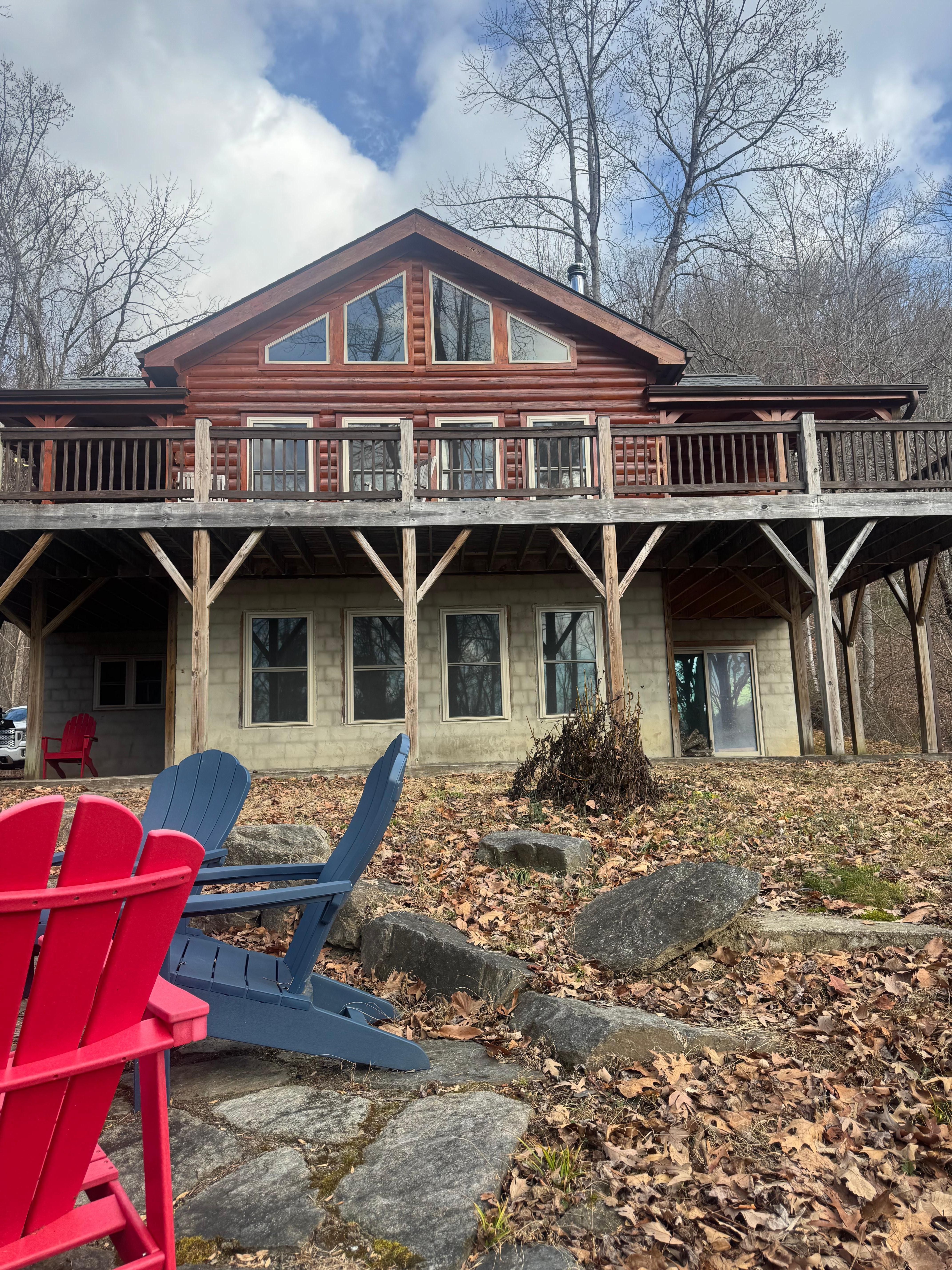 Ubicado en la ladera sur de la montaña Burney en las hermosas montañas de Carolina del Norte, el Chalet at Winghaven es una casa de troncos espaciosa y soleada, construida en 2014.