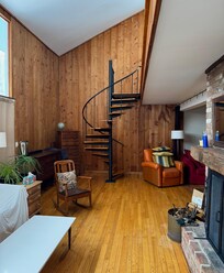 Casa contemporánea de dos habitaciones con chimenea, televisión por satélite,