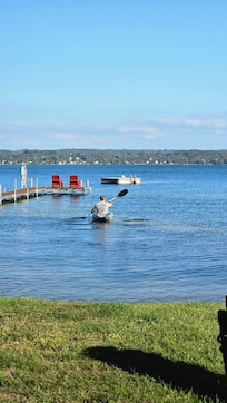 The best feature is location, the flat lot, and the waterfront. We like that it is 20 mins from Traverse City, and 4 minutes to the village of Cedar. It is also minutes from Lake Michigan, Suttons Bay, Leland, and Glen Arbor. There are several wineries within a 20 mile radius.