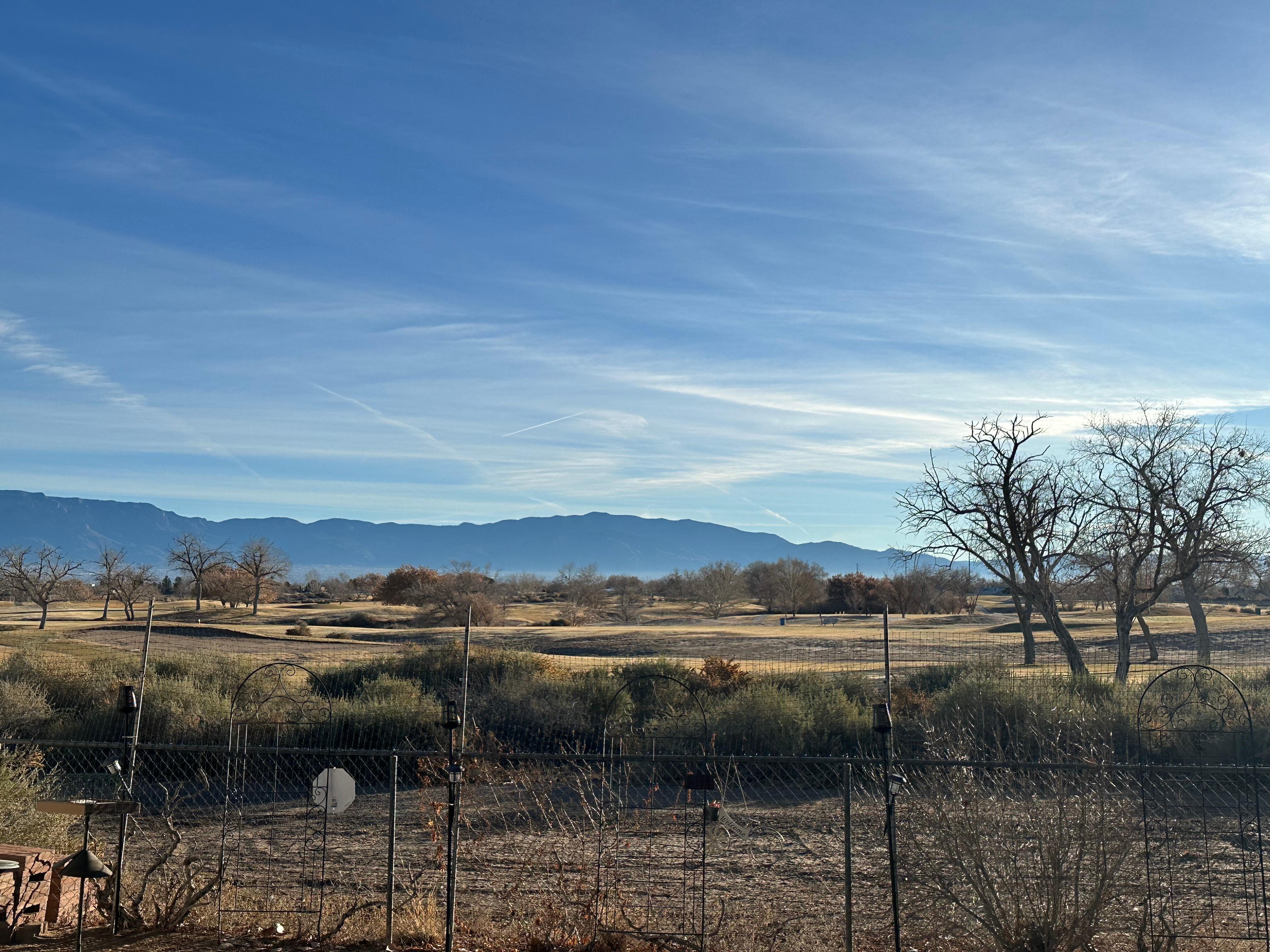 PROPIEDAD: 3 dormitorios / 3 baños en campo de golf con vistas encantadoras desde balcón, patio y 13 ventanas. Aire acondicionado refrigerado (no enfriador de pantano). Vista parcial del monumento nacional del petroglifo. Los globos se deslizan por encima y, a veces, aterrizan en el campo de golf. Tres dormitorios en planta alta. El dormitorio principal tiene balcón con mecedoras. Patio trasero bien cuidado con Kentucky Bluegrass, jardines de flores, mesas y sombrillas, comederos para pájaros, asador. Barrio tranquilo. Estacionamiento para dos vehículos en la calzada. Tres ventiladores de techo y ventiladores de pie.