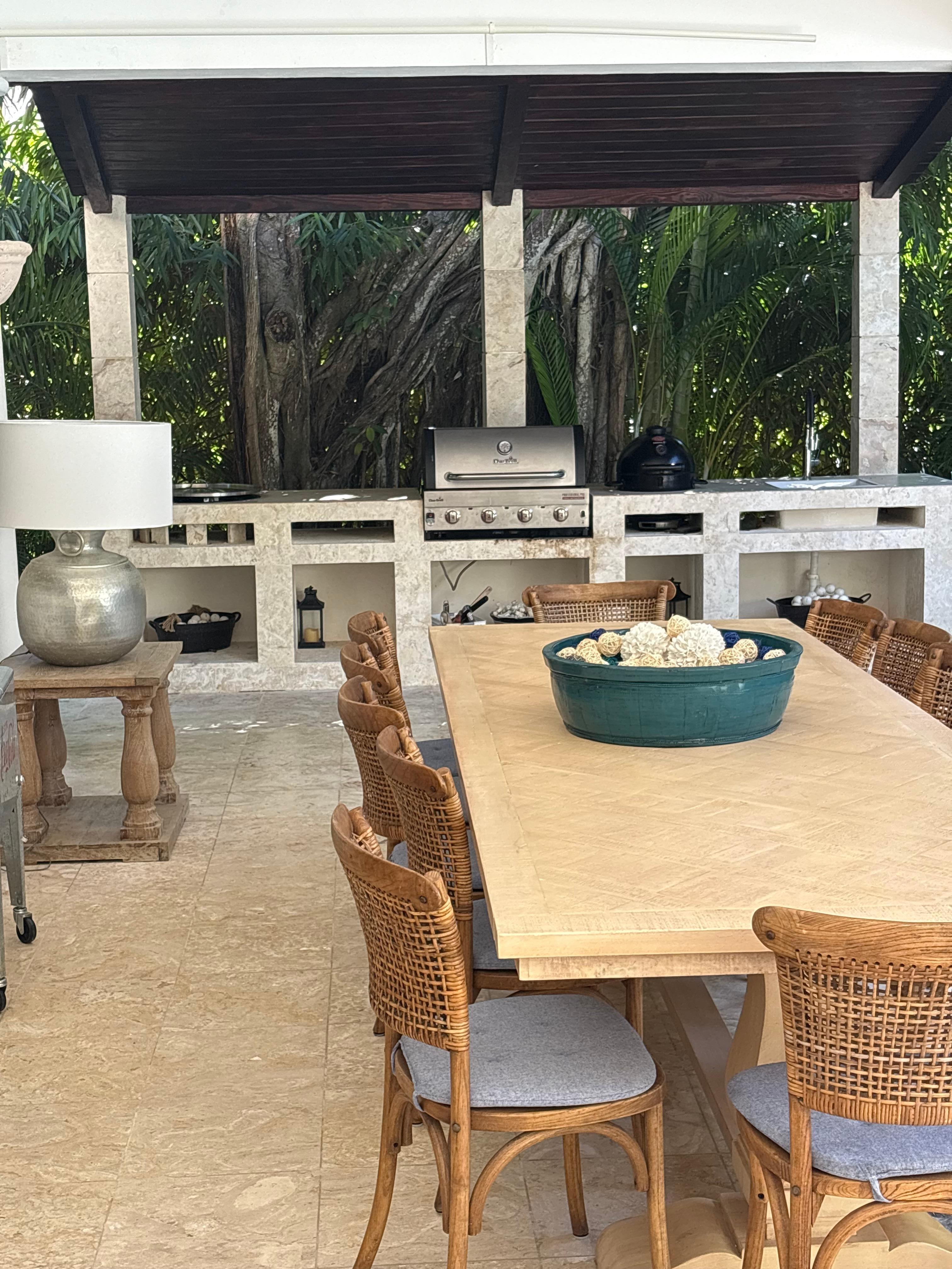 The house was okay to good. Condition wise it is a but dated w/ some signs of wear and tear. The outdoor pool are is nice.The house keeper Melissa was great. Very helpful.The hosts communication was bad and made for difficult planning and stressful tripped. We had submitted our requests for meals and a chef over 3 weeks before our trip via VRBO messaging app. When we arrived, we learned the host had never read those messages, so we had to scramble to figure out dinner our first night and the entire next day of meals on our own. We had a very hard time booking Uber and getting to the grocery store. Only on the last day as we were trying to get to airport did our host tell us we needed to book ONLY Uber Select. This would have been very helpful info to have from the beginning as our Ubers cancelled on us countless times. We often felt stranded at the house with this trip. There were two golf carts which I had inquired about when I booked the trip. Upon arrival I let our host know we would like to use them. One of the golf carts barely moved with four people in it, and had a flat tire. The other golf cart had a bad battery and wouldn’t start the next day. The host blamed us for leaving the lights on. Had she met us and showed us around the house and how to use everything this may not have happened. We requested a 2:30p check in and our host let us know that was no problem. We got there at 2:30 and no one was there to meet us for over an hour and it wasn’t the host. Stressful
