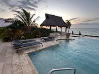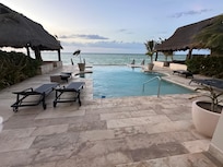 Increíble piscina con vista infinita al mar, cuenta con ocho asoleadores (tumbonas) para poder tomar el sol. Dos grandes "palapas" donde puedes disfrutar de reuniones o cenas en familia o amigos. Es muy agradable, disfrutar del atardecer sólo en compañía.