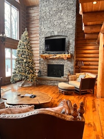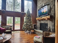 5 habitaciones más oficina / estudio (con chimenea) Y sala de familia grande con áreas para dormir en el garaje. Un montón de espacio para todo el grupo! Dormitorio principal del nivel principal con chimenea y baño principal increíble. El segundo nivel ofrece habitaciones con literas con 4 camas dobles y baño en suite, dormitorio con área de loft y dos dormitorios adicionales. Oficina / estudio con chimenea se puede utilizar como espacio adicional para dormir, junto con el ENORME loft en el garaje con espacio para dormir (y otra chimenea y TV)! Televisores en cada habitación!