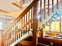En el interior, el amplio interior se siente aún más espacioso gracias a los techos abovedados y las abundantes cantidades de luz natural que se filtran a través de la pared de las ventanas. Póngase cómodo en el área de estar para ver una película favorita o simplemente recuéstese después de un día de esquí, calentándose los dedos de los pies frente a la chimenea.
