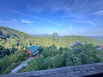 We chose this particular cabin because of it's open feeling, location, and amazingly beautiful views. Mountains, Memories, and S'More has a great view of the mountains, a front row seat to Dollywood Fireworks in the summer, and is in a tranquil area. In addition, you couldn't be in a better location - close to all the conveniences and main attractions in the area, yet quiet and secure. Ample flat parking and no steps into the cabin makes unloading and loading safe an easy. We are 10 minutes from traffic light 8 and the Main Parkwayof Pigeon Forge or 17 minutes to Gatlinburg.