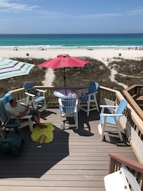 Excellent relative quiet West End Location with large-gated deck Directly on the Beach... Convenient to shopping, recreation and dining--- many within walking distance so you don't have to waste your precious vacation time tied up in beach traffic.