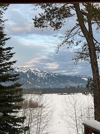 Observe Tamarack desde el patio trasero y contemple la estación de esquí de Brundage mientras está sentado junto a la chimenea de leña.
