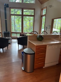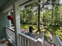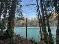 There is a door off the kitchen to the outside deck that wraps around the front of the house and looks out to the river. Enjoy beautiful views of the Skykomish river while enjoying your outdoor meals on the deck or at the picnic table next to the back yard firepit! We have installed a brand new hot tub on the deck just 50’ from the river and overlooking the park like setting and fire pit!
