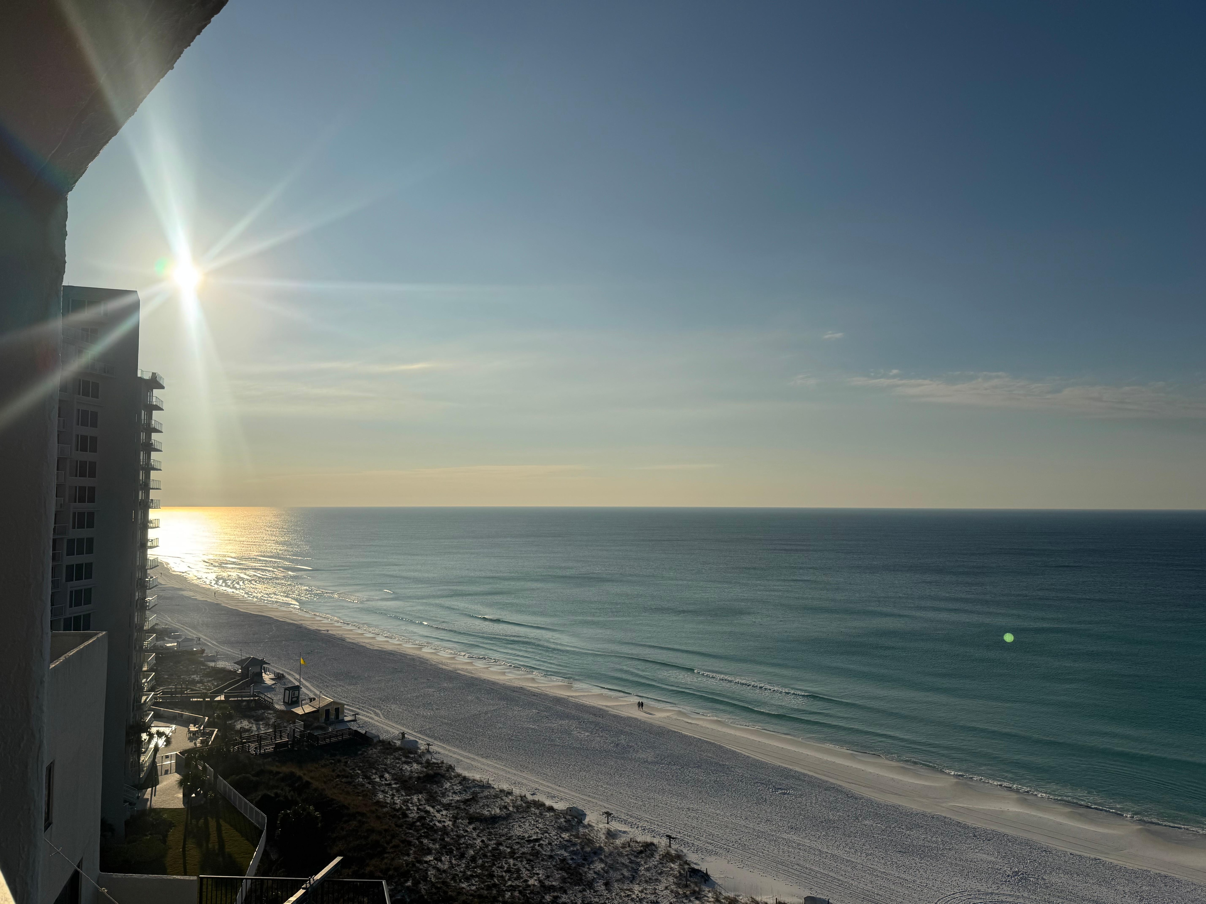 Despertar a las playas de arena blanca con el trasfondo de las aguas color esmeralda y turquesa, sin siquiera salir de su cama! Este condominio de 2 dormitorios y dos baños frente al mar en el piso 14 ofrece vistas espectaculares de la puesta de sol del Golfo de México desde el dormitorio principal, así como desde el área de la sala de estar / comedor / cocina. El interior está muy bien equipadas, ambiente cálido y acogedor, y promete ser un lugar donde se hacen las memorias de las vacaciones.