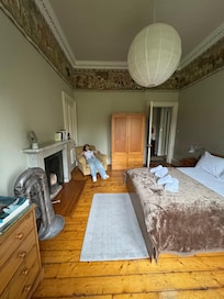 Los techos altos, las grandes chimeneas de mármol, el arte original y una colección ecléctica de libros hacen que este piso sea especial. Esto es parte de mi casa, que se ha convertido en un piso completamente independiente.