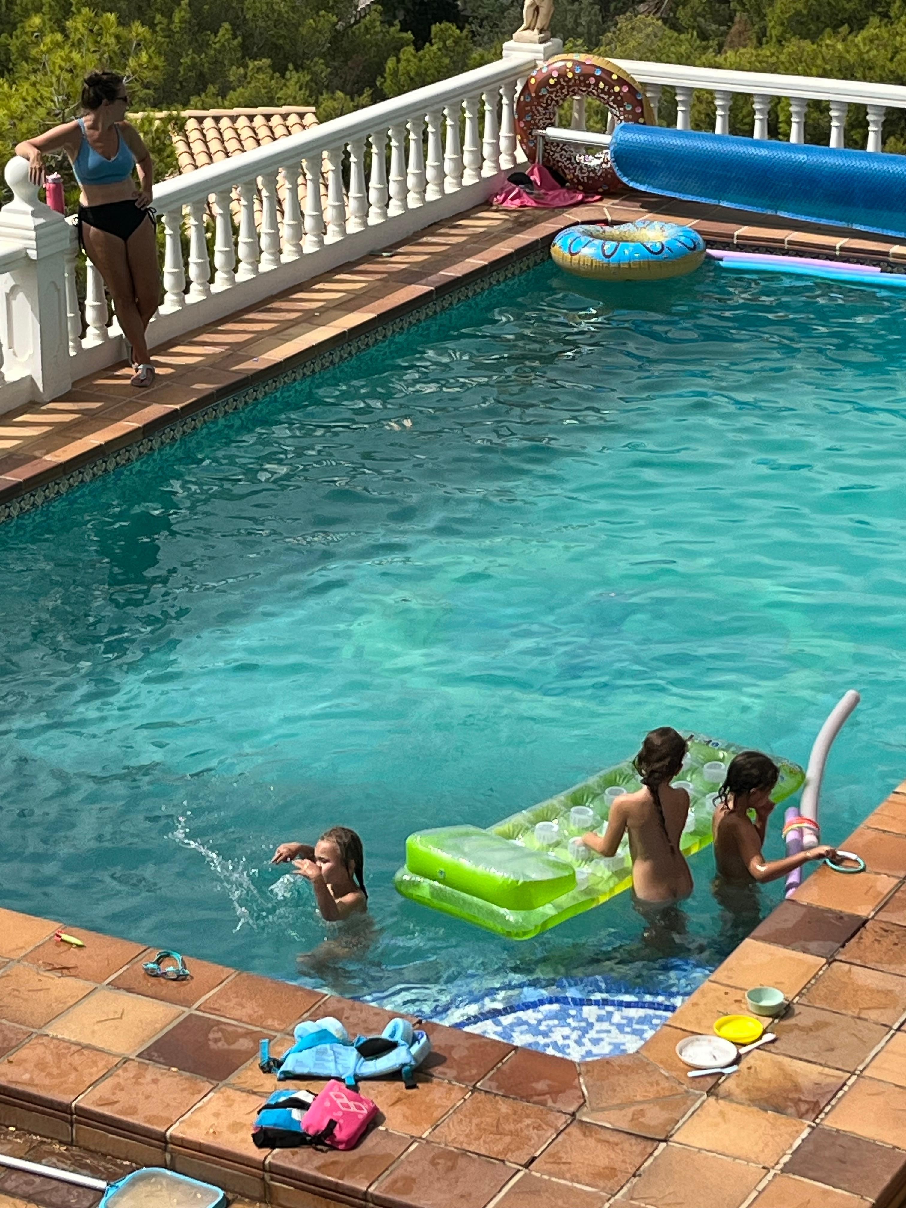 La gran piscina (5m x 10m !!!) se calienta y por lo tanto es ideal para la primavera, el otoño y el invierno.