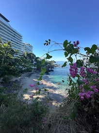 Wonderful accommodation in terms of comfort, location and a small but wonderful and under-utilized beach. You can walk to Zone Romantica by beach or highway. The kitchen has plenty of placemats, cloth napkins, dishes, glasses, pots and pans for dinner parties. The two pools had restaurants each and 2 for 1 cocktails (La Paloma and Margaritas). for this unit, if you are NOT going to the rooftop the south elevator isn't used as much. You can take the stairs to the beach, lower pool and fitness center. Room service seemed to be popular.I walked to Cardenas Street and then to Baca Market for fresh fruits and vegetables, eggs, roasted chiles, spices (sold by the pound/gram so you can buy just a bit) and if you continue up the street in half a block, same side, are there's an an inset with butcher and poultry shops with fresh products they cut for you in minutes; you just past it if you get to a narrow restaurant frequented by locals you have just passed it but can go through this place, turn right and you will see the poultry shop (sells out by noon). Very affordable and safe, quality meats. I walked there and took a taxi back with my grocery bags (provided at this unit). Recommended and affordable dining: Joe Jack's, (frequented by Americans and Canadians) L'Angolo Napoli for brick oven pizza, Bonito (B's) Lounge (Asian fusion small plates), and Tiki Bar (fresh cerviche and micheladas at Playa Conchas Chinas by the Orchid condo.Affordable entertainment: The Palm Cabaret