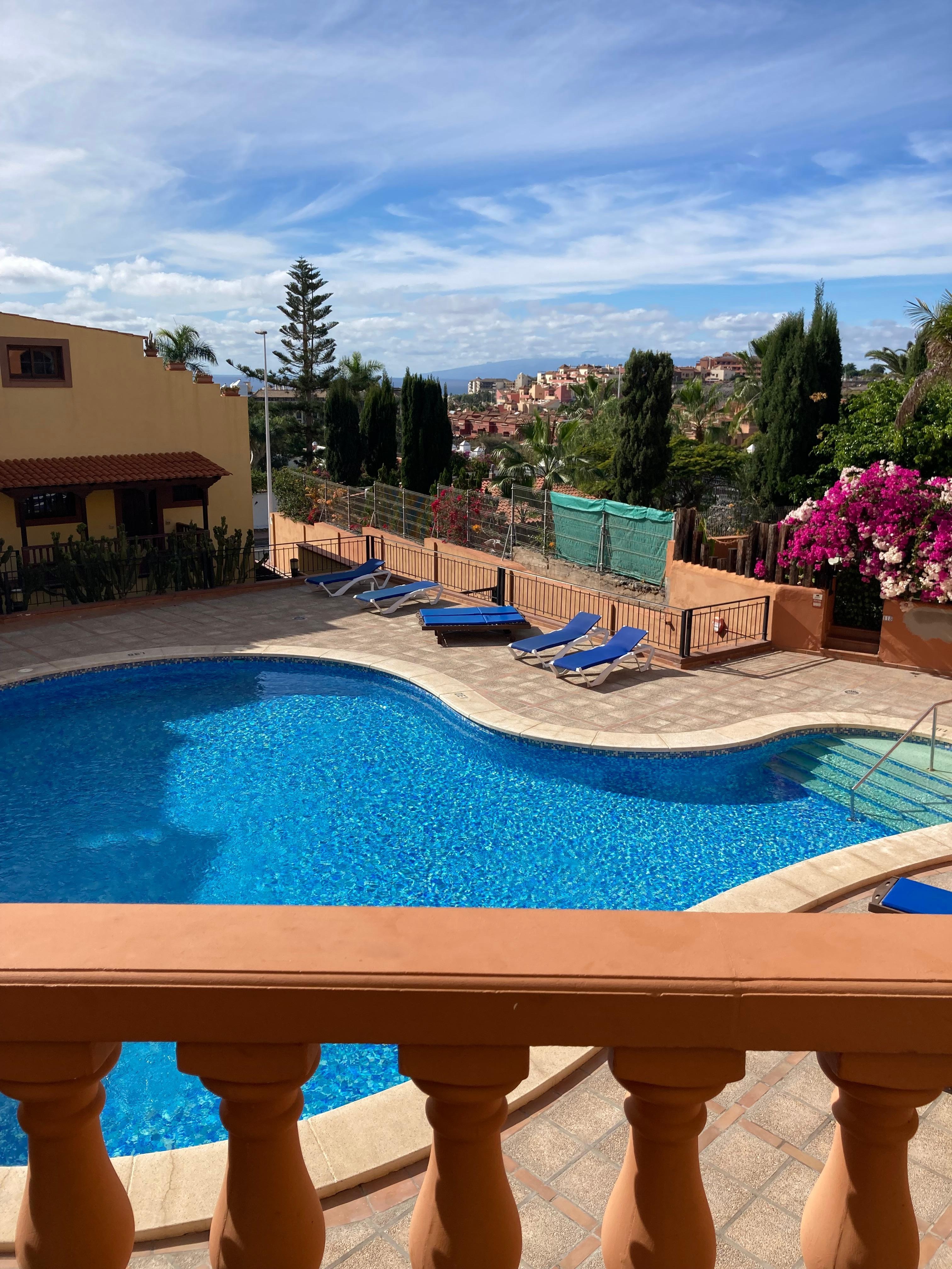 Acogedor apartamento de dos habitaciones en El Duque con piscina, vista al mar y amplias terrazas.