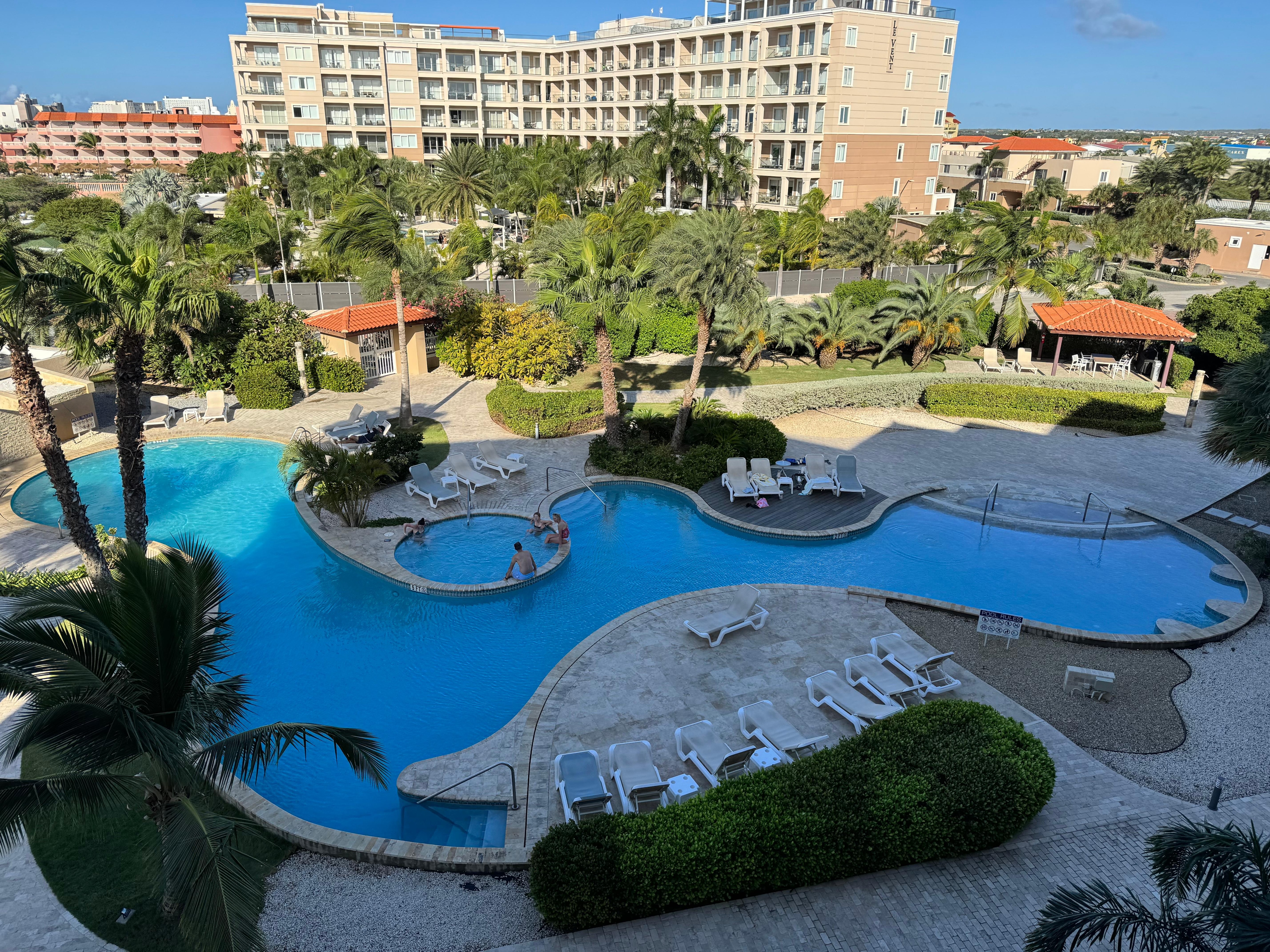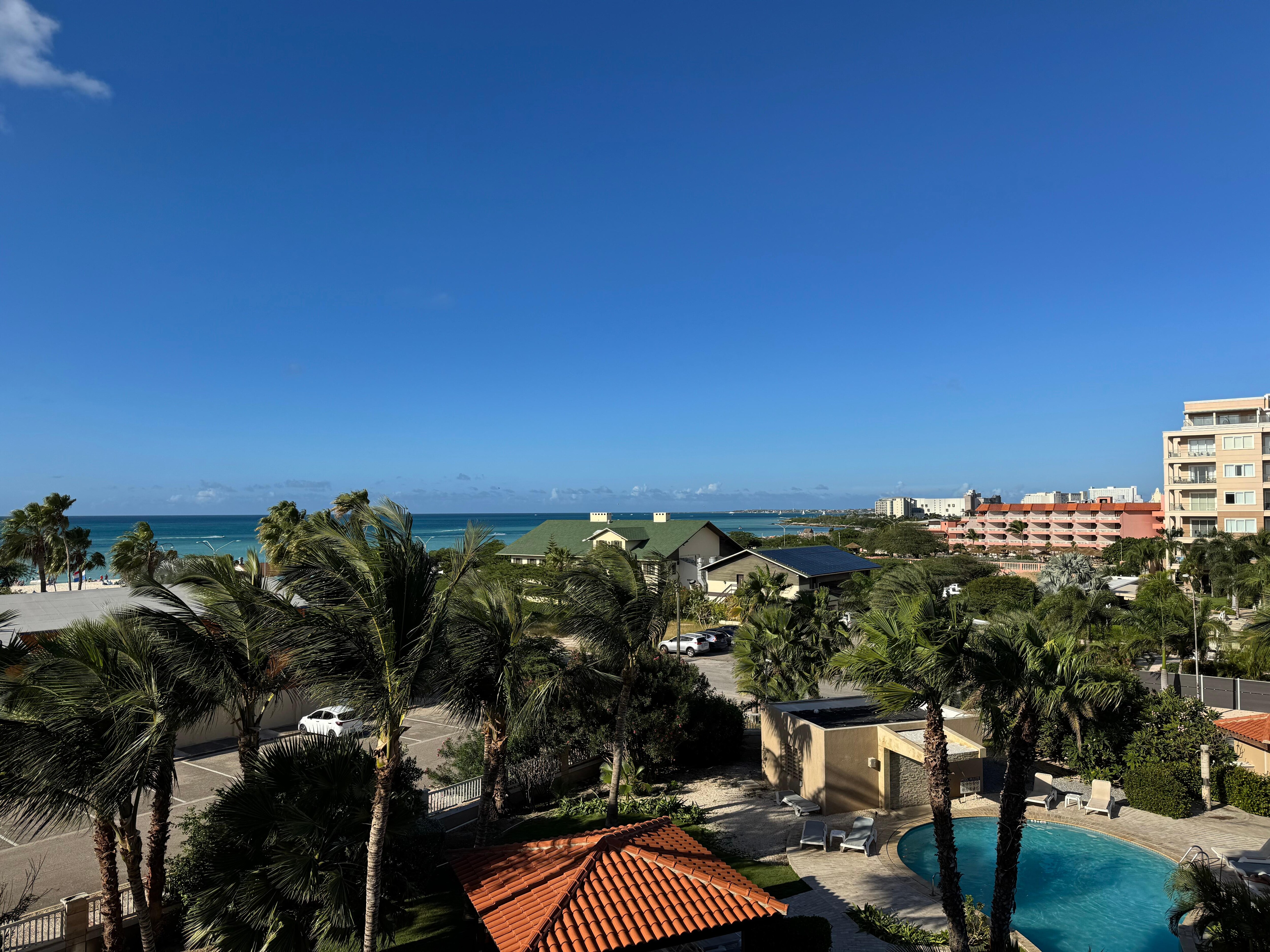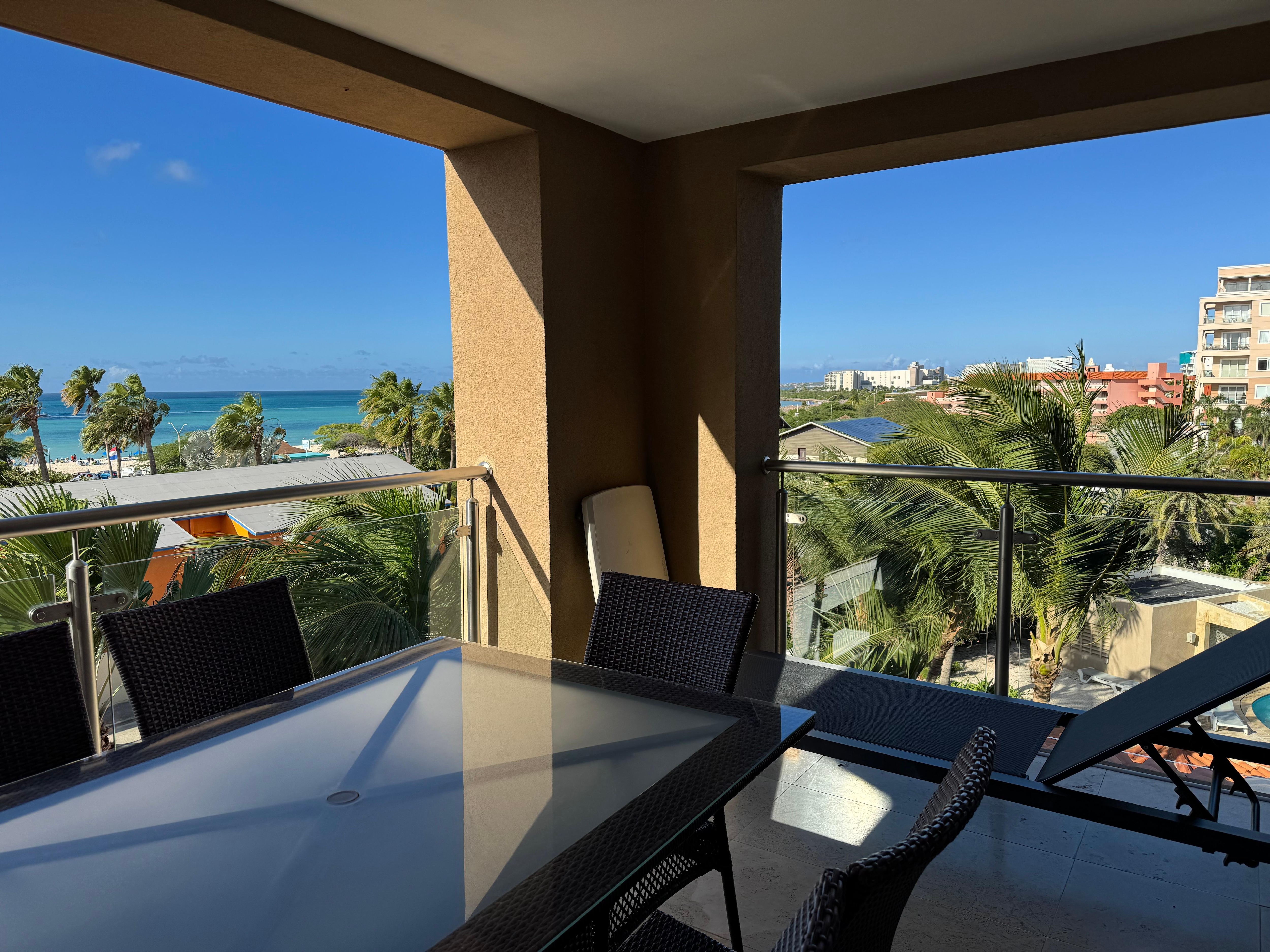 A poca distancia de buenos restaurantes en la isla como el Chalet Suisse, Screaming Eagle, Passions on the Beach, también muy cerca del supermercado más grande y moderno de Aruba, Superfood.