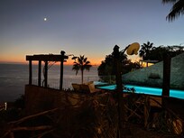 Impresionantes vistas al mar se encuentra al frente de las cabañas. También hay una nueva piscina disponible en la propiedad para uso de los huéspedes de ambas cabañas. (La piscina es compartida por los huéspedes de la cabaña de una habitación y de dos habitaciones)