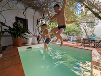 Precioso carmen en el corazón del Albaicín, el barrio más auténtico de Granada, un laberinto de callejuelas con sabor árabe. La casa data de 1910 y está rehabilitada respetando el estilo del Albaicín y con todas las comodidades para que disfrutéis de vuestra estancia. Tiene un jardín privado con una alberca (pequeña piscina) para refrescarse en verano y una terraza en una de las habitaciones. La casa es espaciosa (135 m2) y se organiza en 2 plantas en torno a un patio interior, está llena de detalles que la hacen realmente agradable. En la planta alta hay una habitación con cama de matrimonio, una zona de trabajo, otra habitación con cama de matrimonio y otra cama individual o doble con acceso a pequeña terraza (cuna disponible) y un baño completo con una bañera muy generosa. En la planta de abajo se encuentran la cocina y el salón, con acceso directo al patio y un aseo.