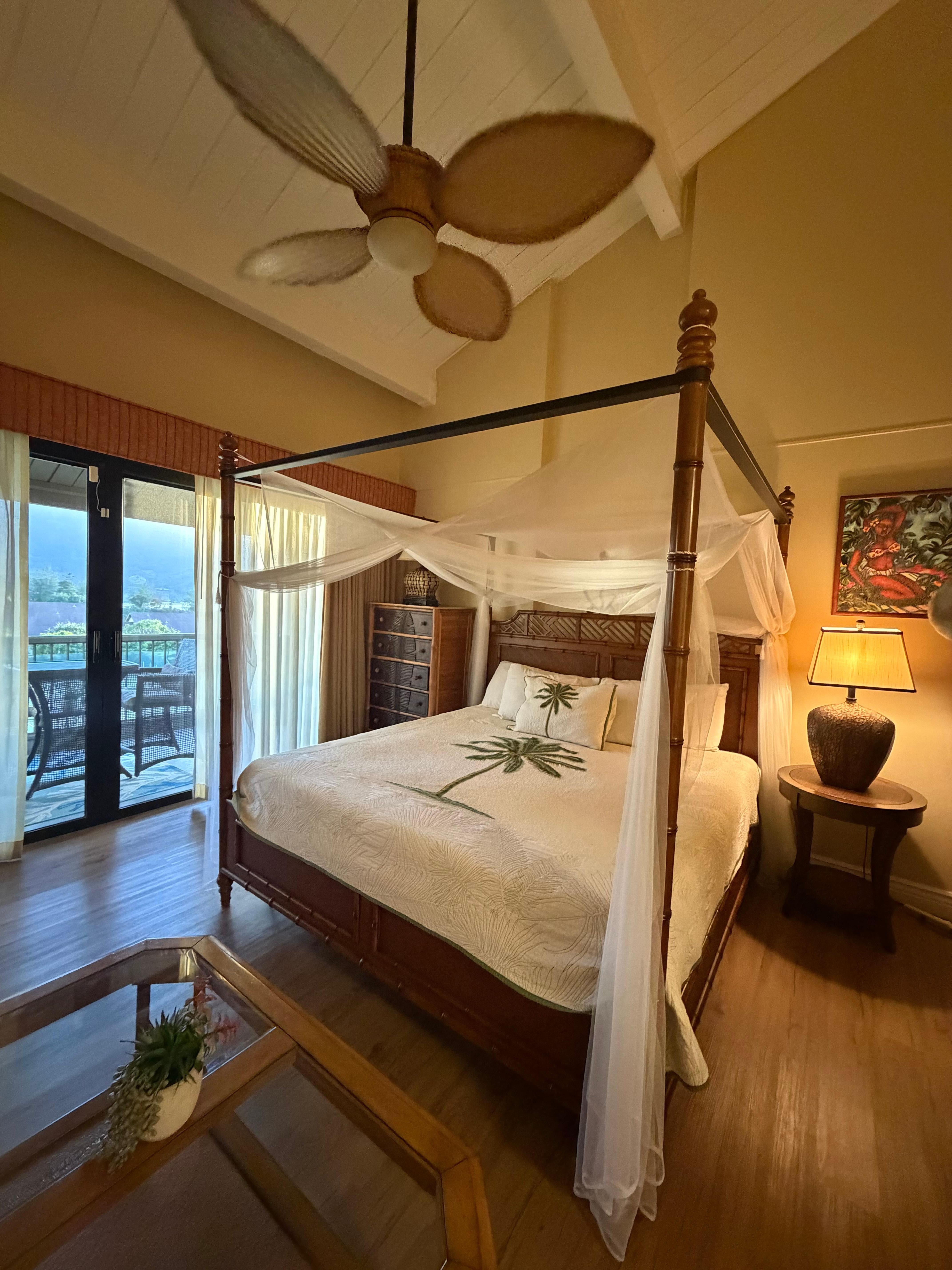 A diferencia de algunas de las unidades que tienen techos de 8 pies, nuestro condominio tiene techos tipo catedral de 16 pies que hacen que el espacio sea aún más amplio y espacioso. El estudio tiene su propio lanai privado, con mesas al aire libre para disfrutar de sus increíbles vistas o para disfrutar del entretenimiento nocturno en vivo que proviene del restaurante Happy Talk.