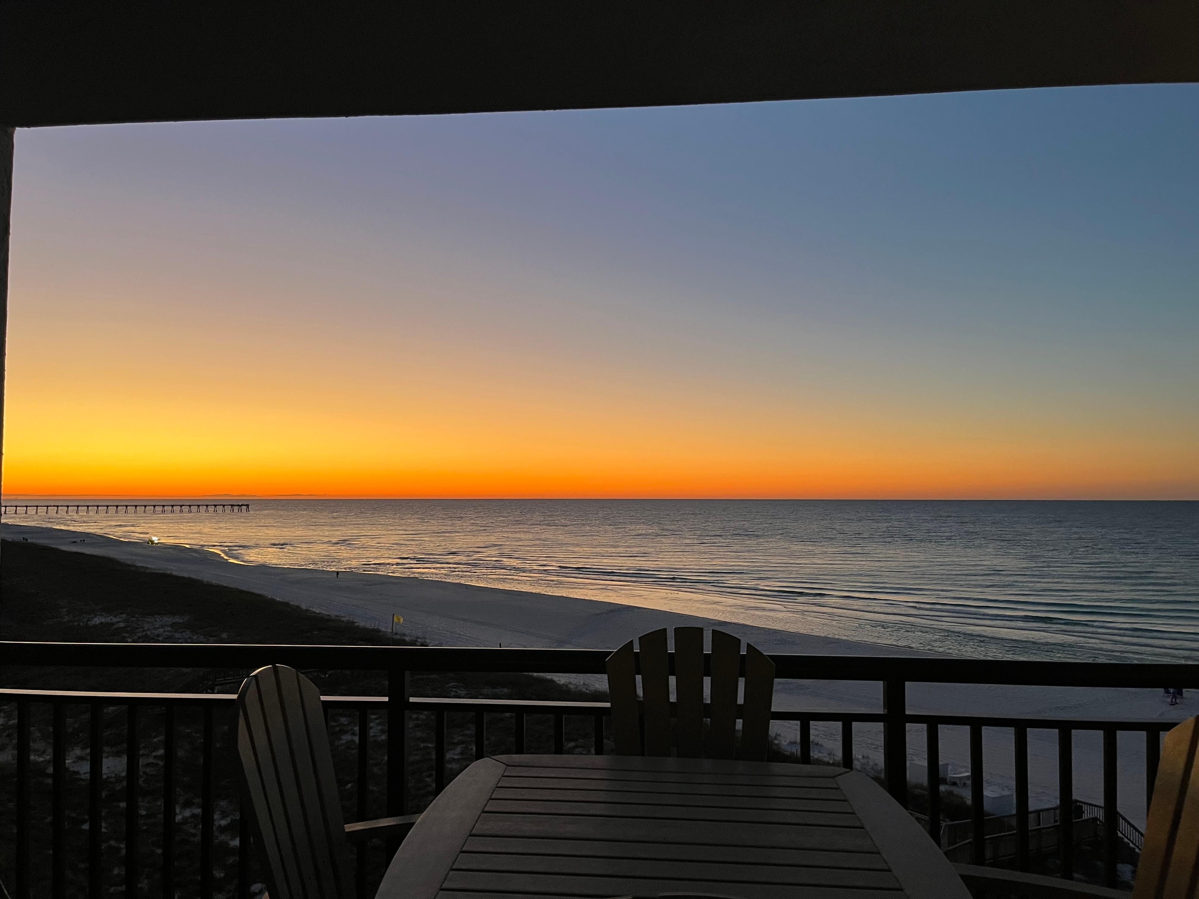 We are a family that LOVES the beach! Whether relaxing on one of the two balconies to watch a sunrise or sunset or taking long walks on the beautiful beach at Navarre - we enjoy every minute at the beach! Even stormy days are beautiful!
