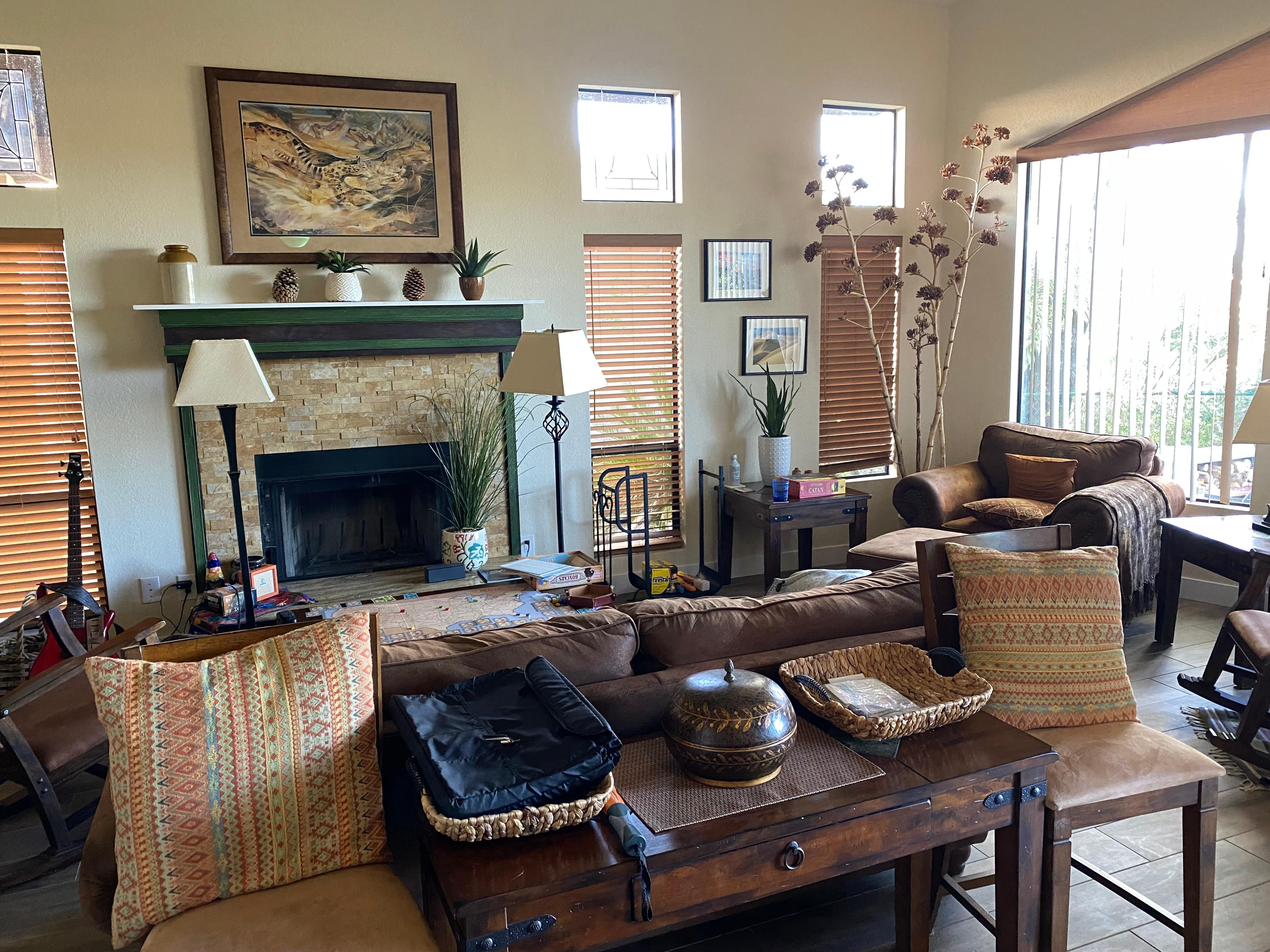 El dormitorio principal tiene una cama king size y televisión por separado. El cuarto de baño tiene una gran bañera y ducha separada. El segundo dormitorio se encuentra en un pasillo privado lejos de la gran habitación, con una cama de matrimonio. Las dos habitaciones tienen acceso a un patio completamente cerrado por separado, lo que es ideal para dejar salir a los perros o simplemente para relajarse en total privacidad. Grandes ventanales en la gran sala se asoman en las montañas y campo de golf. Los frentes de patio a un campo de golf, pero se encuentran protegidos de visión directa de los golfistas por arbustos y un pequeño aumento. La cocina está totalmente equipada con ollas, sartenes, platos y utensilios. Barbacoa al aire libre, mesa y sillas previstas para salir a cenar. La comunidad de Santa Fe cuenta con 2 grandes piscinas y spas con un montón de espacio para relajarse en la piscina.