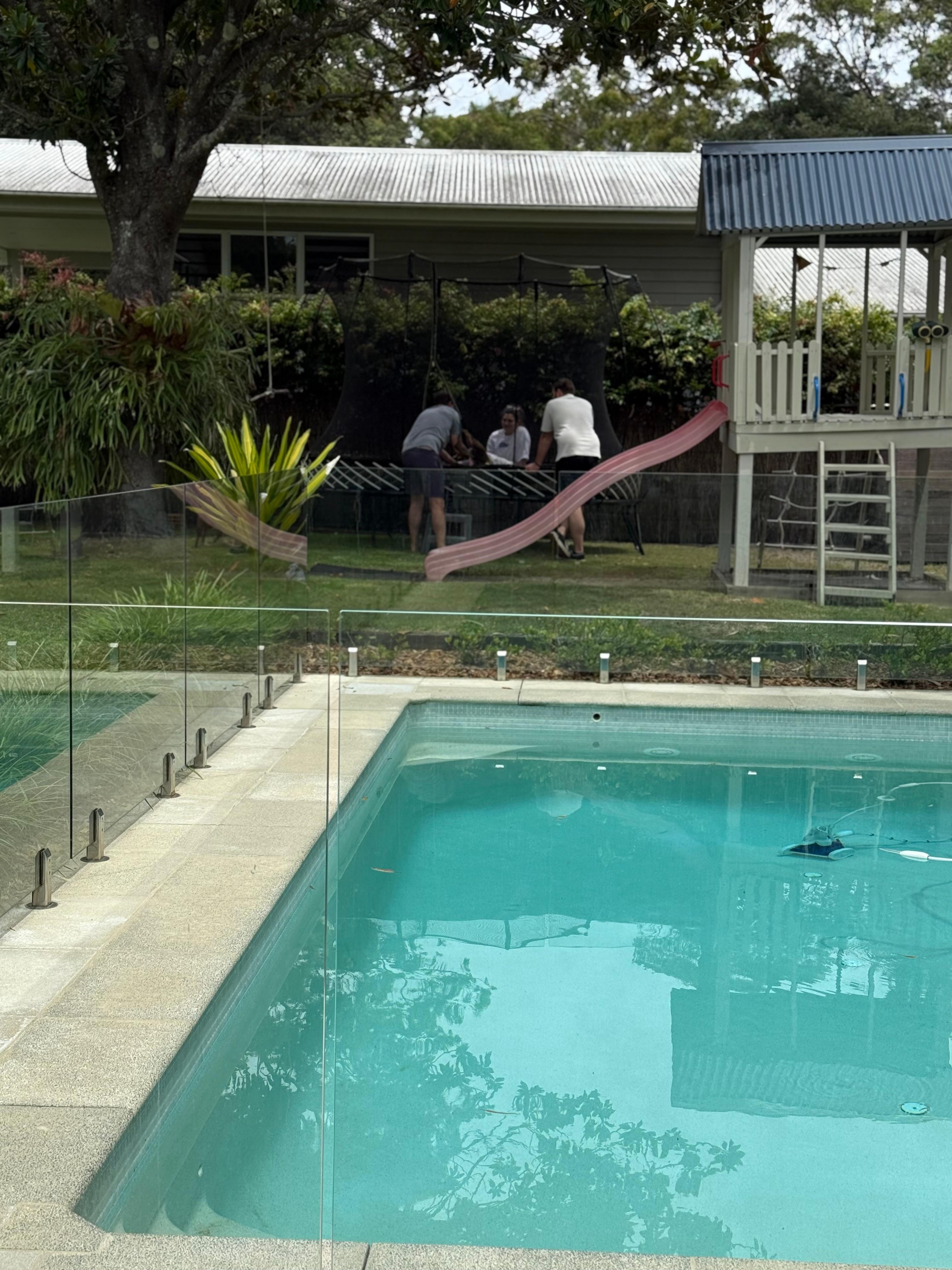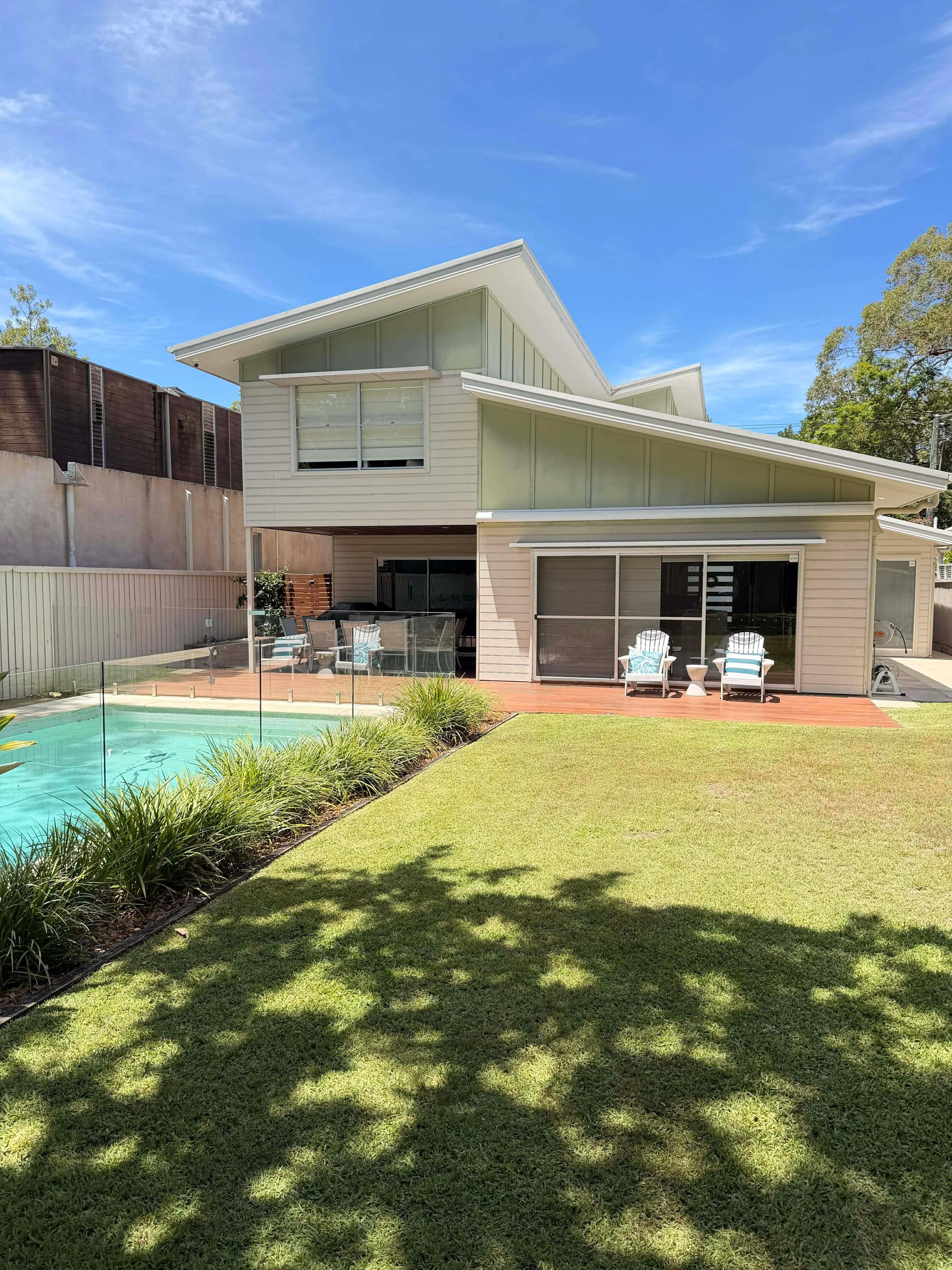 Piscina climatizada con energía solar, patio delantero y trasero completamente vallado (seguro) y a solo unos minutos a pie de la playa y cerca de la cafetería.