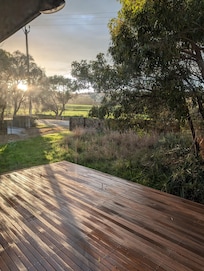 When we built the house we orientated it to make the most of the relaxing rural views. Waking up in the morning to the views of the garden and the hills beyond, often with grazing horses or kangaroos, is a great way to start the day. And the short walk to the beach is a great way to continue it!