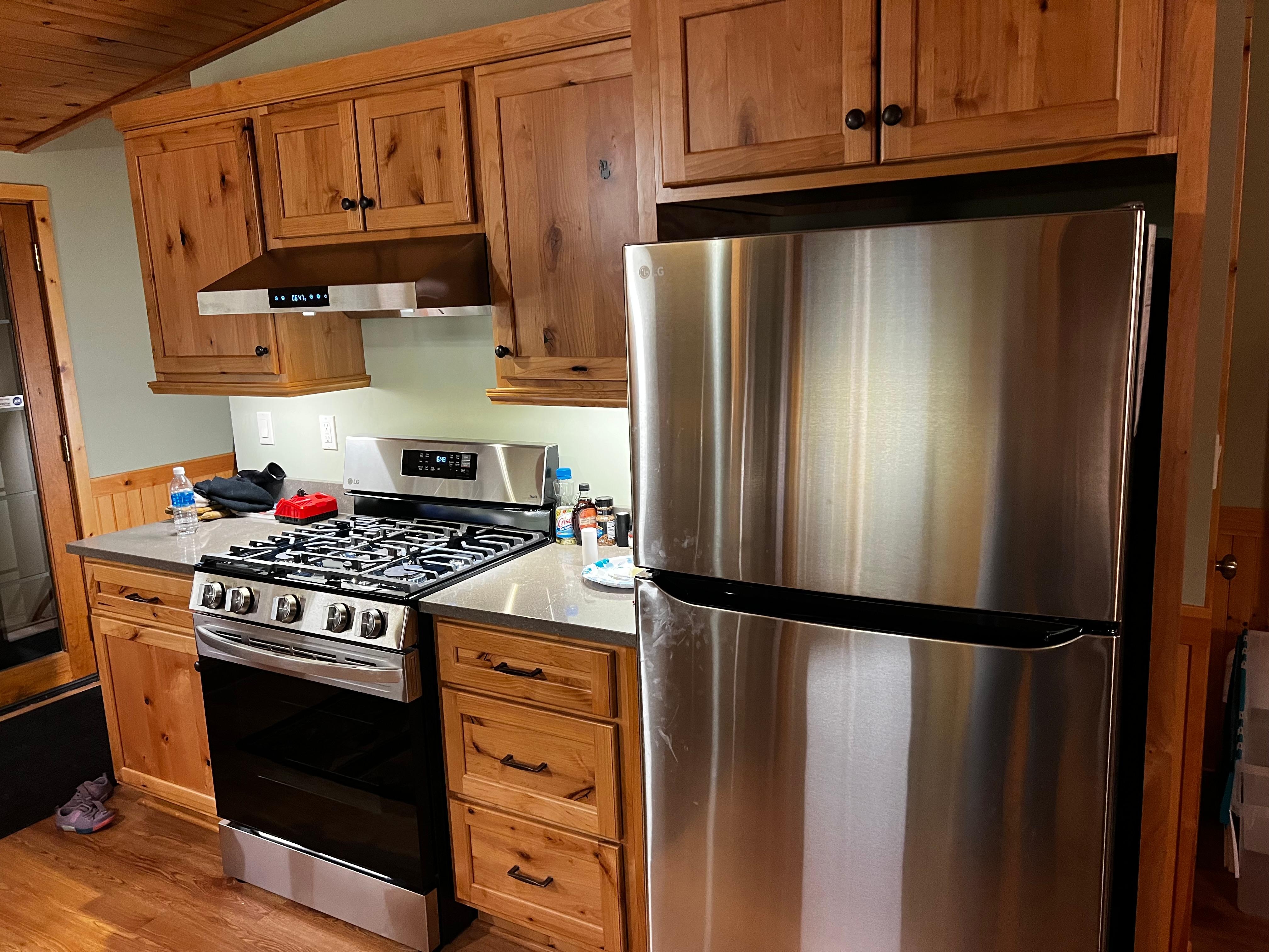 Nuestra casa ofrece un ambiente familiar completo con una cuna y literas, y un área poco profunda junto al muelle para chapotear en el agua. En el verano, pasa tus días en el agua o sentado en el porche o terraza. En el invierno, acurrucarse junto al fuego o salir a la moto de nieve en los senderos cercanos. Cocine sus comidas en nuestra cocina completamente equipada. Hay cuatro habitaciones: dos en el piso principal (una cama king y una cama queen), y dos en el nivel inferior (una queen, una cuna y una cama nido doble). Hay un baño completo en cada nivel.