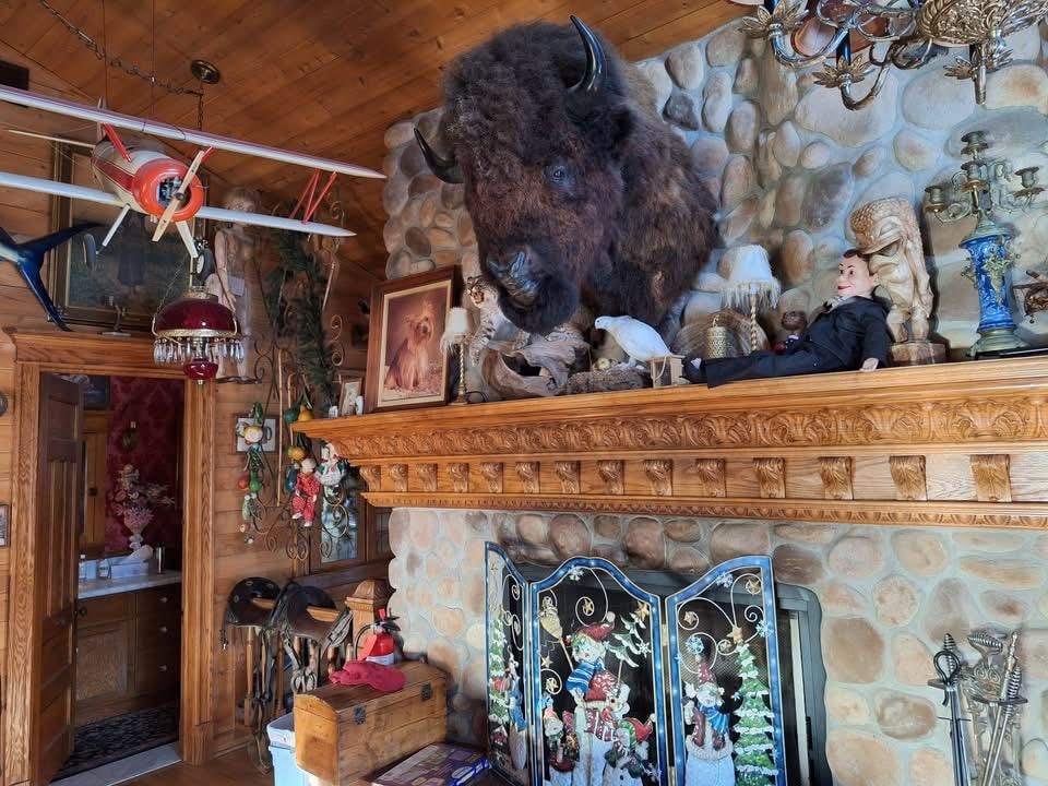 Una gran escalera conduce al segundo piso donde hay 6 dormitorios, cada uno con acceso privado para envolver el porche. Hay 5 columpios en el porche, 2 camas de día oscilantes, un poste de bombero que conecta el porche de arriba con la bañera de hidromasaje de 20 pies. También hay una chimenea en la sala de hidromasaje. El piso de arriba tiene su propia gran sala y salón adicional con chimenea de piedra de gran tamaño, oso grizzly de 10 pies de altura, bisontes, morsa, leones, antílopes y otras exóticas taxidermias antiguas. Incluso hay un candelabro antiguo de 550 libras de The Bellagio para saludarlo mientras conduce hasta la casa. ¡Brian no podía irse de Las Vegas sin él!