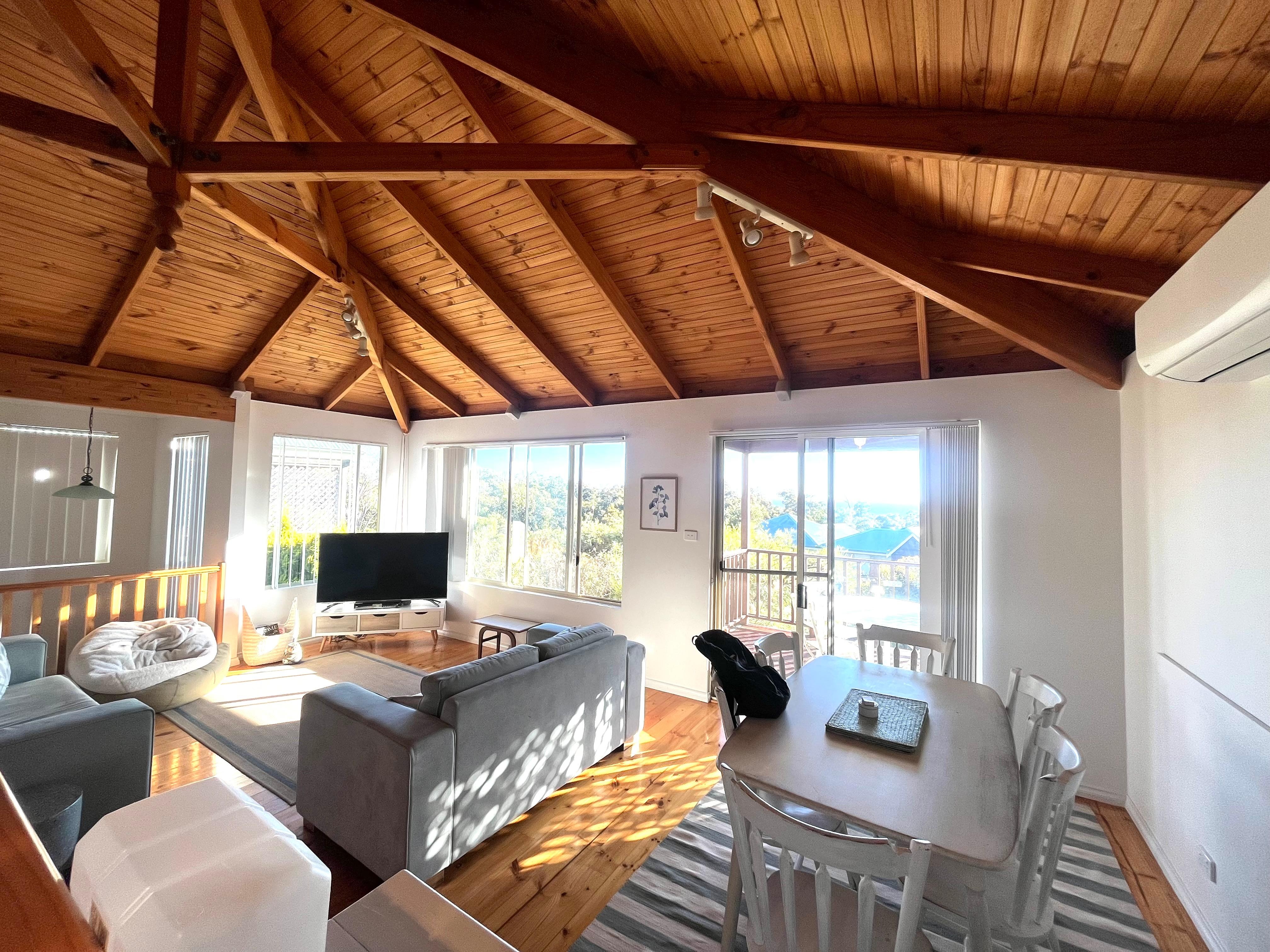 La cocina, el comedor y el área familiar desembocan en un gran balcón exterior con tremendas vistas al océano y a la Reserva Meelup.