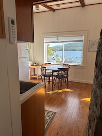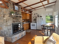 La casa de estudio privado se completa con cama de matrimonio, baño independiente y acogedora sala de estar con una hermosa chimenea de madera de granito ardiente. Ver veleros, pescador de langostas locales y la fauna de la cubierta exterior, mientras que asar el favorito de mariscos de Maine! La zona de la cocina está totalmente equipada con tamaño completo placa eléctrica, nevera y microondas. Se proporcionan todos los utensilios de cocina y comedor necesarios.