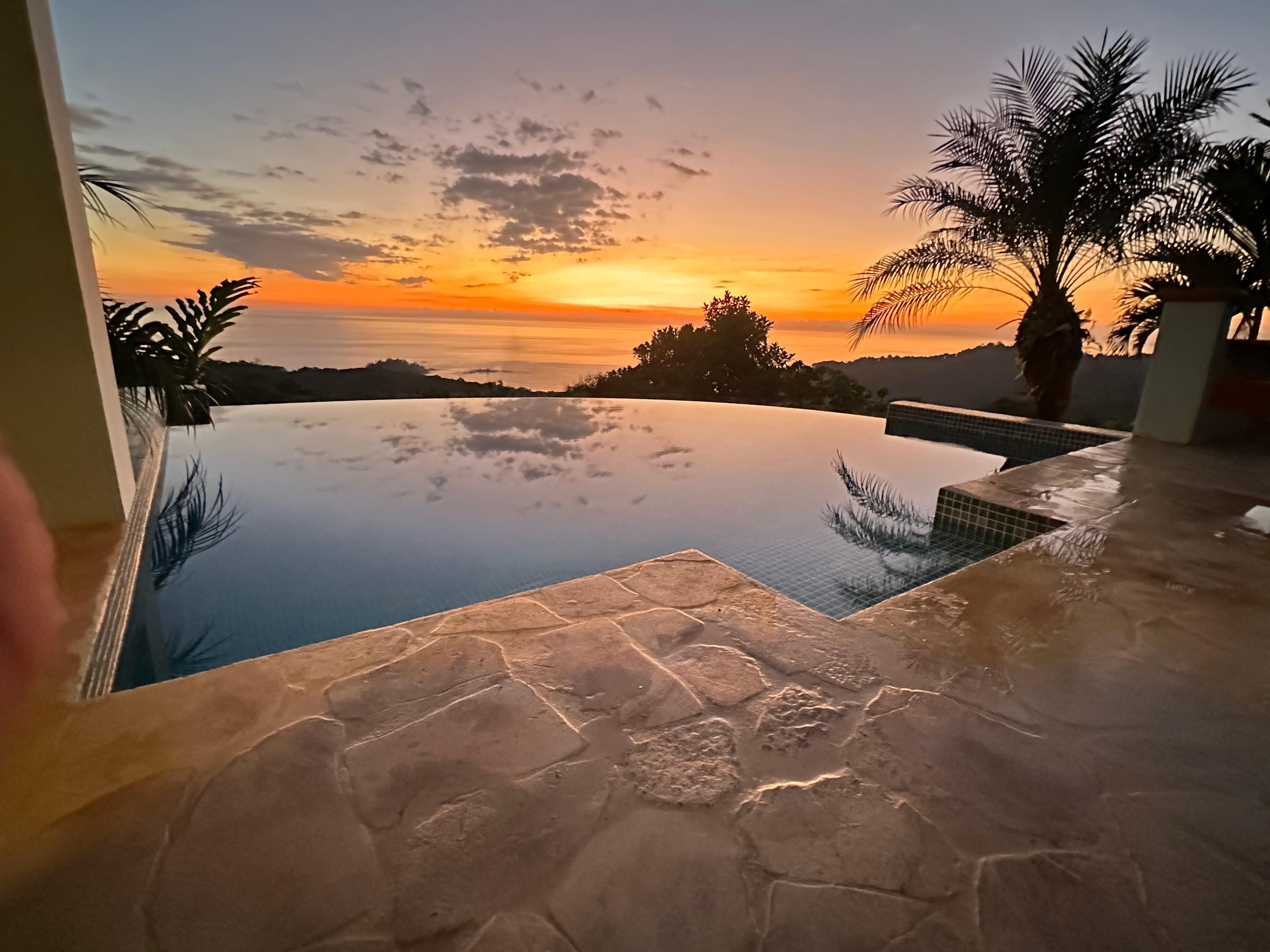Después de una noche de sueño reparador en la cama king size, el sol se levantará cada mañana a las 5:30 a.m. y la jungla lo recibirá con el sonido de pájaros y monos aulladores. La mariposa Blue Morpho es un sitio común visto flotando a través del jardín y alrededor de la piscina. Los tucanes vuelan con frecuencia y a menudo aterrizan en los árboles cercanos para darse un festín con las muchas frutas que se ofrecen. Durante el día, puede hacer una pequeña caminata por la propiedad y tener la oportunidad de ver los monos capuchinos de cara blanca, una gran variedad de aves hermosas y tal vez incluso un perezoso. A medida que el día termina, es agradable sentarse en el porche y disfrutar de una bebida o una cena a la parrilla y ver los barcos llegar a la Bahía de Dominicalito después de un día de pesca mientras el sol se pone detrás de ellos.
